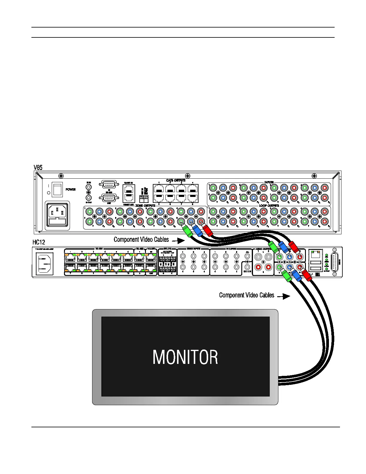 Figure 3-12 shows the video connections from the V85, through the HC12 and then to a