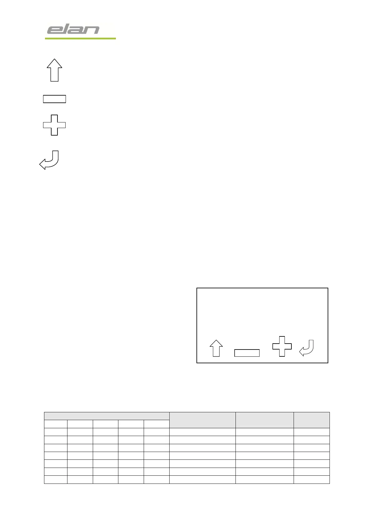 Tank type (1-4) for each tank there is a choice of five settings (see table)