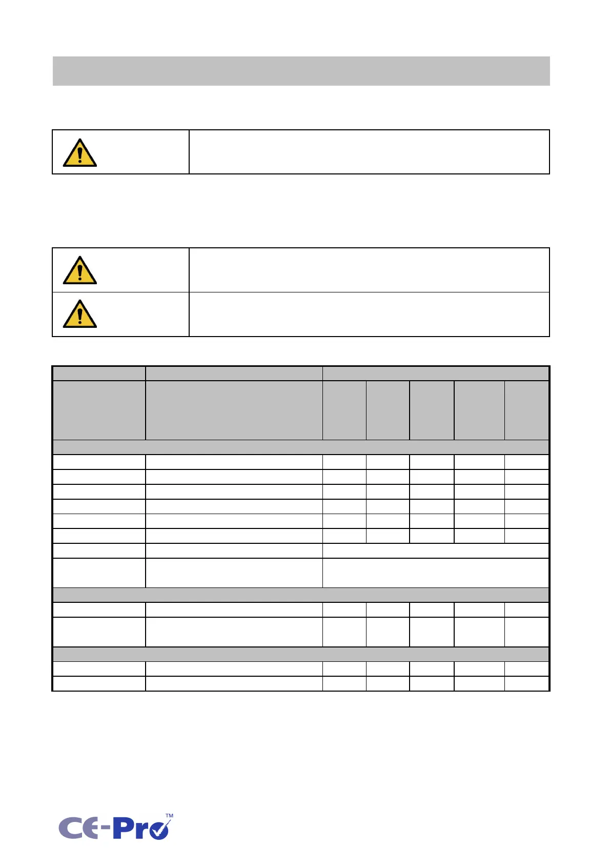 This section includes a generic table which details typical inspection and maintenance intervals. This