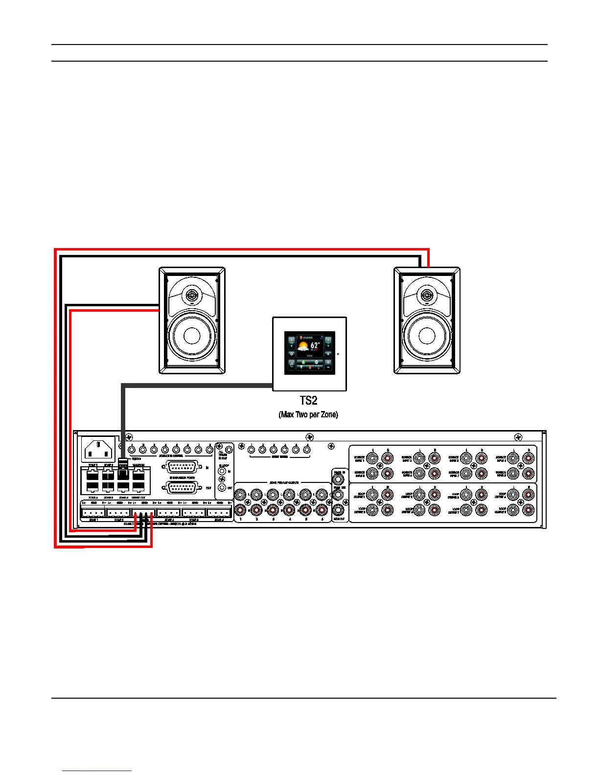 To create an independent stereo zone, simply connect the M86A’s Speaker Outputs to a