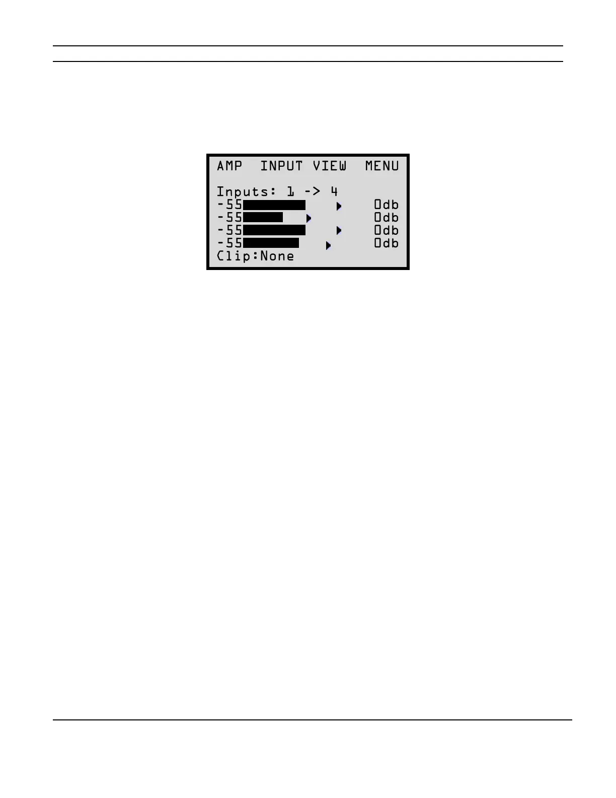 This menu selection displays four bar graphs which correspond to the input signal strength for each