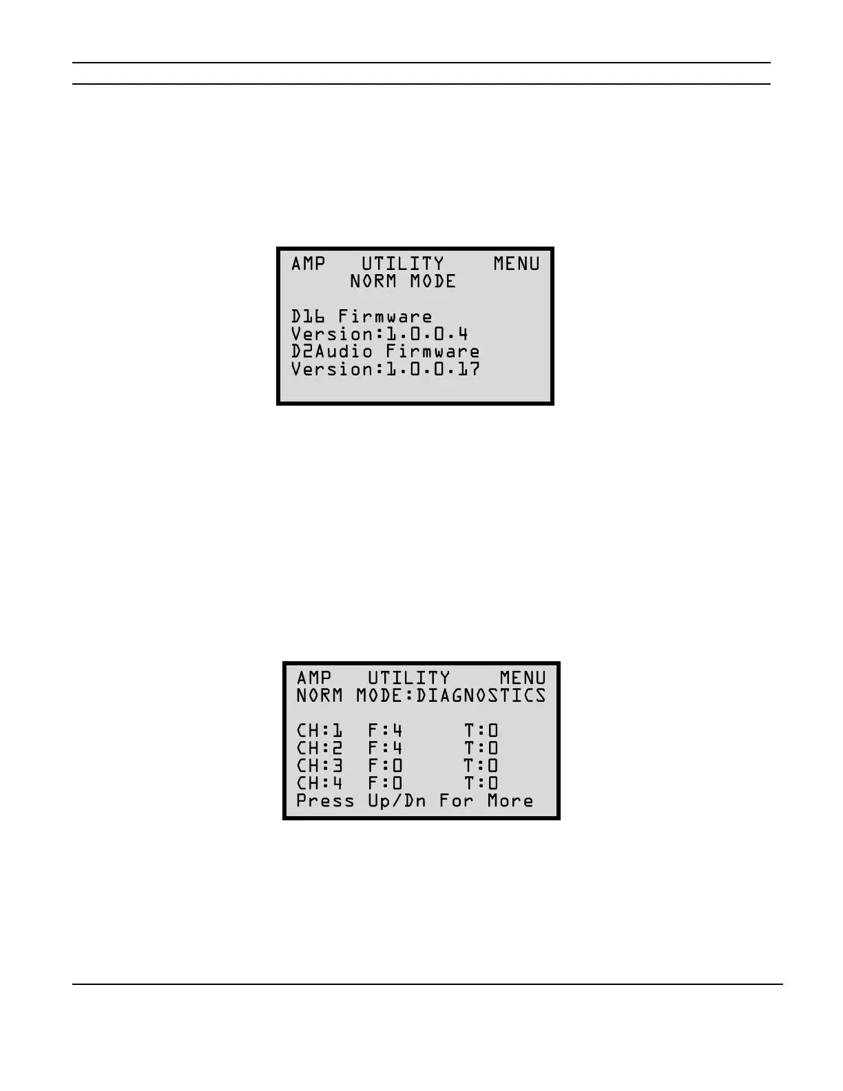 the MENU button, use the CHANNEL button to select the Diagnostics screen. Use the UP and