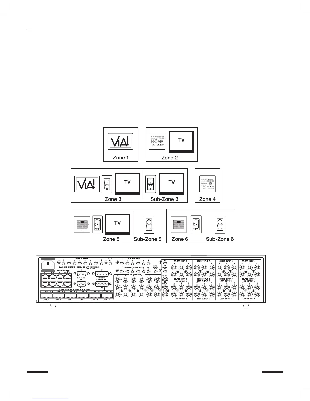 figurations. Each Zone Preamp Output has a video output, so that up to six TVs, VIA! Touch Panels, or monitors can