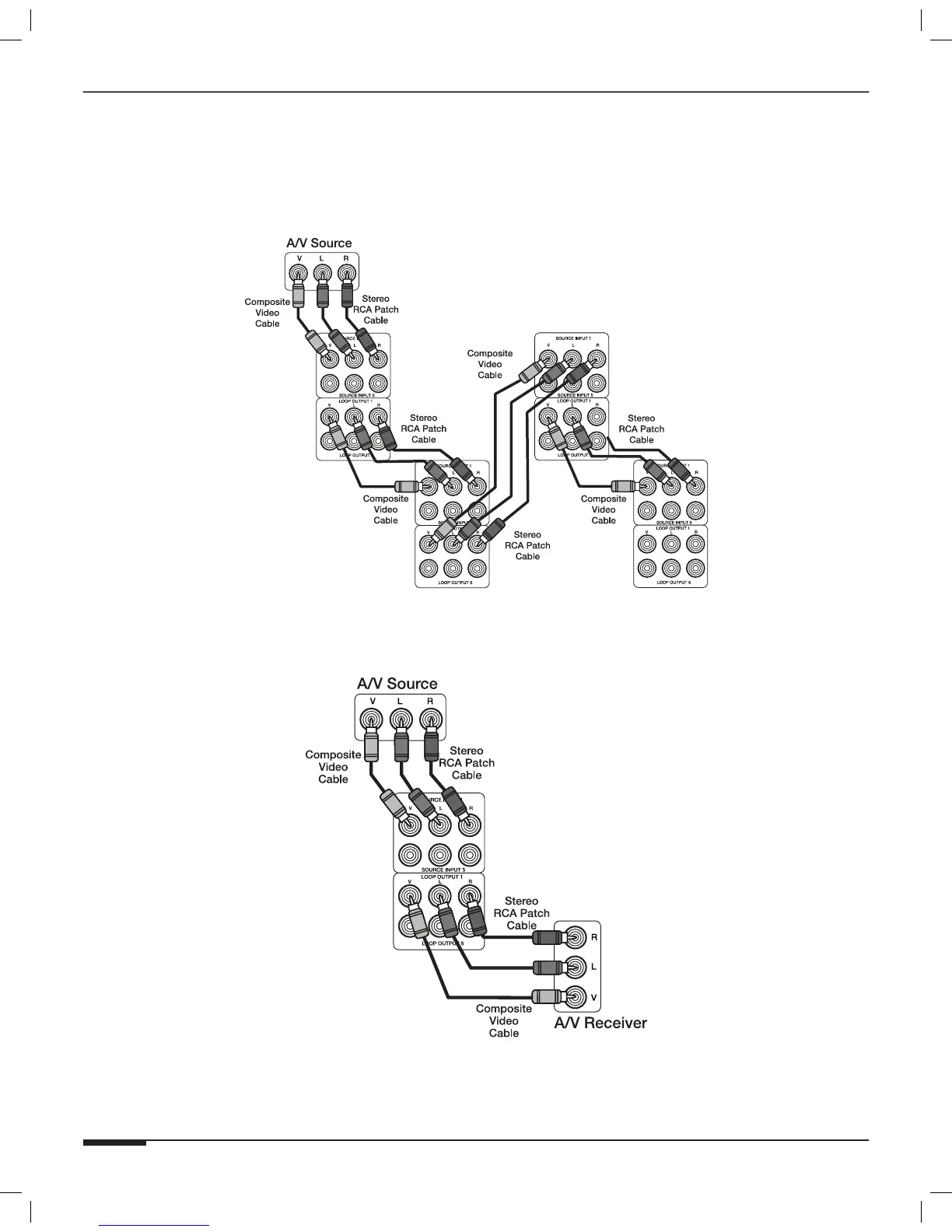 RCA audio/video cables to connect a Loop Output to additional S86A chassis or a Home Theater receiver.
