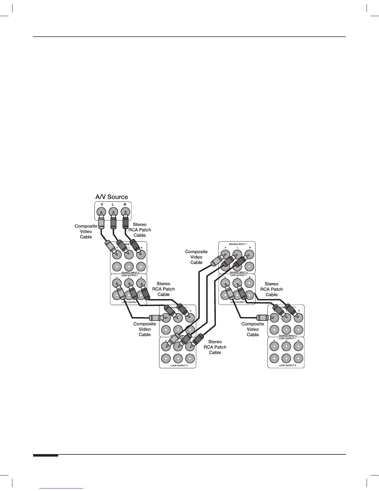 Use RCA Audio and Video cables to connect a source to S86A #1. Use additional cables to add additional chas-