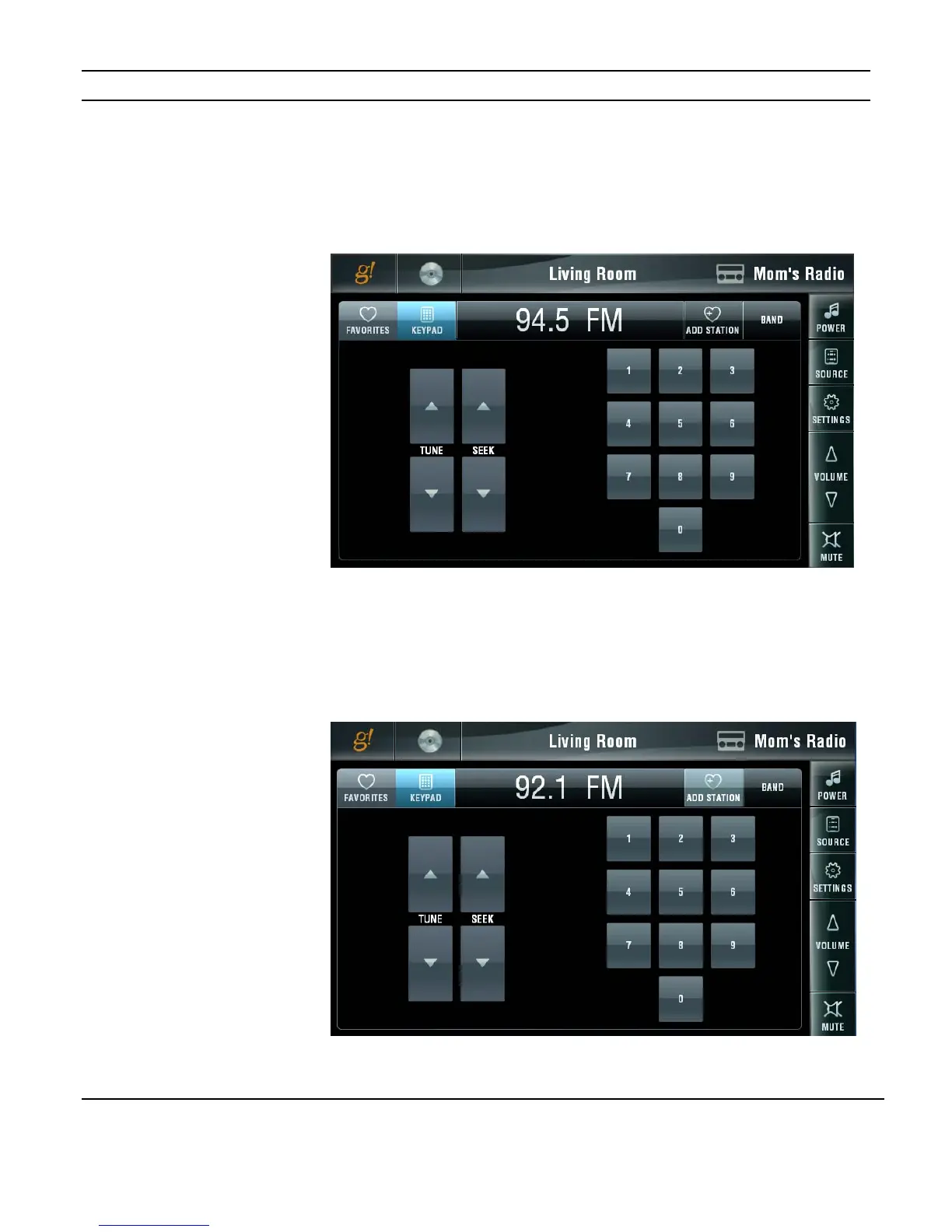 To add a station to the FAVORITES tab, tune in the station and press the ADD STATION