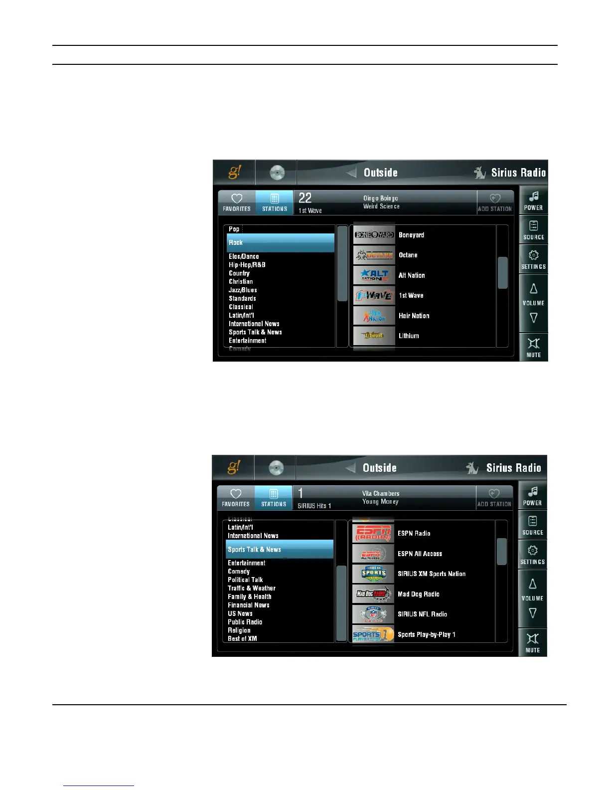 Use the scroll bars to access additional genres and stations.