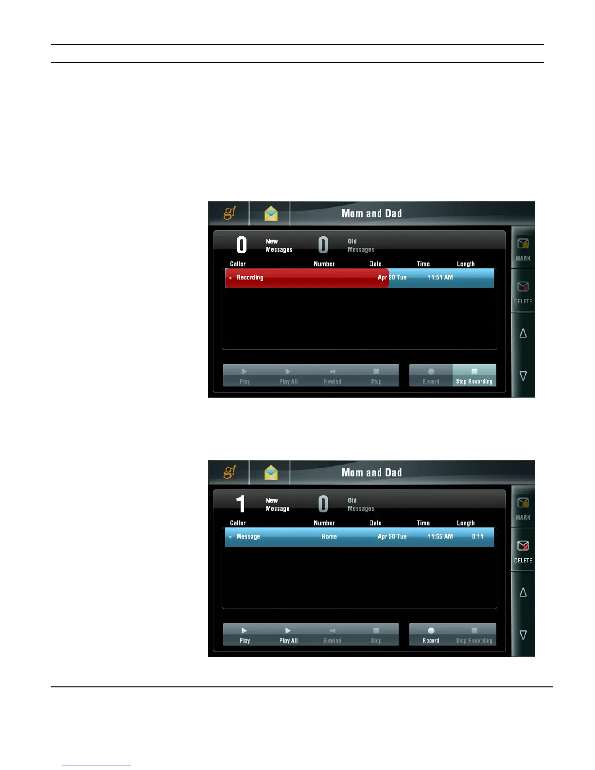 recording, press the STOP RECORDING button. The message will be saved automatically.