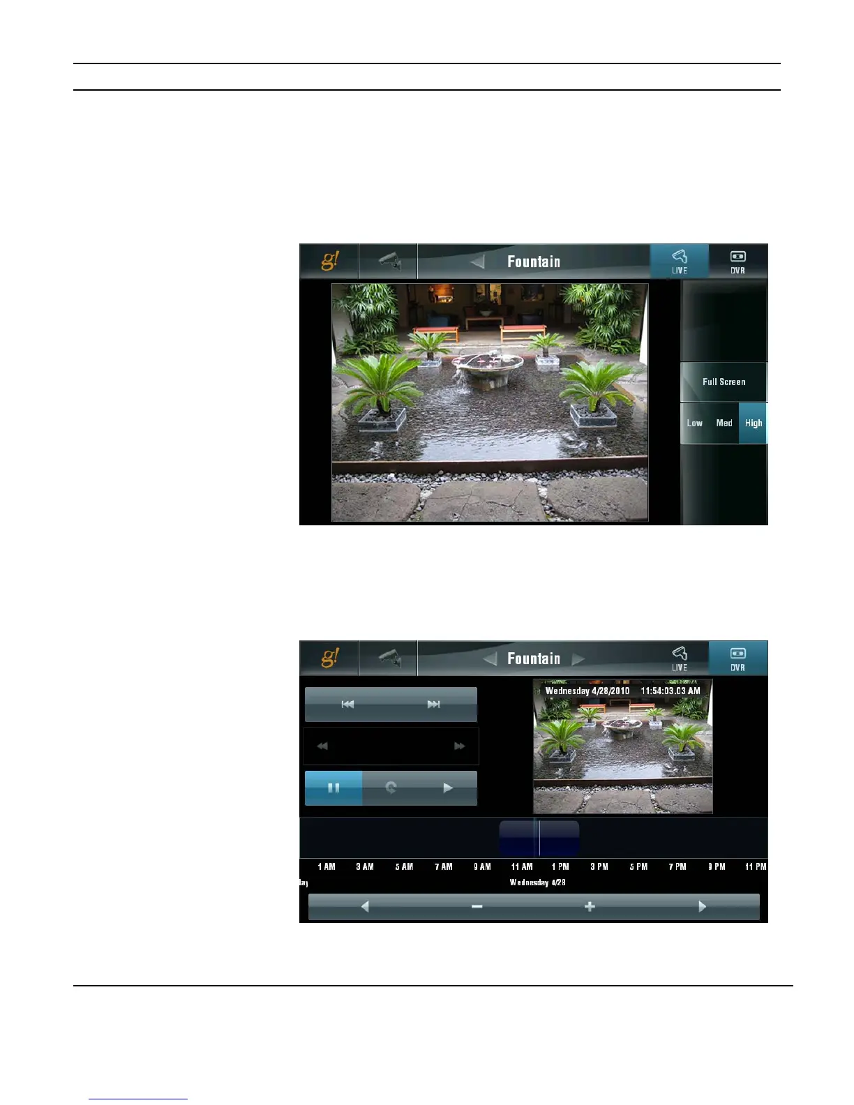 When you select a camera with the DVR feature enabled the screen will appear as shown