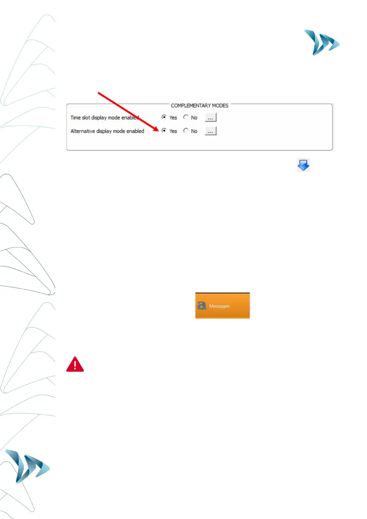 dialogue box as for the Time-Slot display mode. Select YES for ‘Alternative display mode