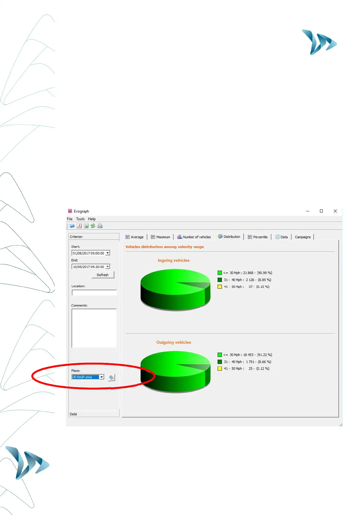 In this section, the recorded speeds are represented in pie chart form, and allows you to see