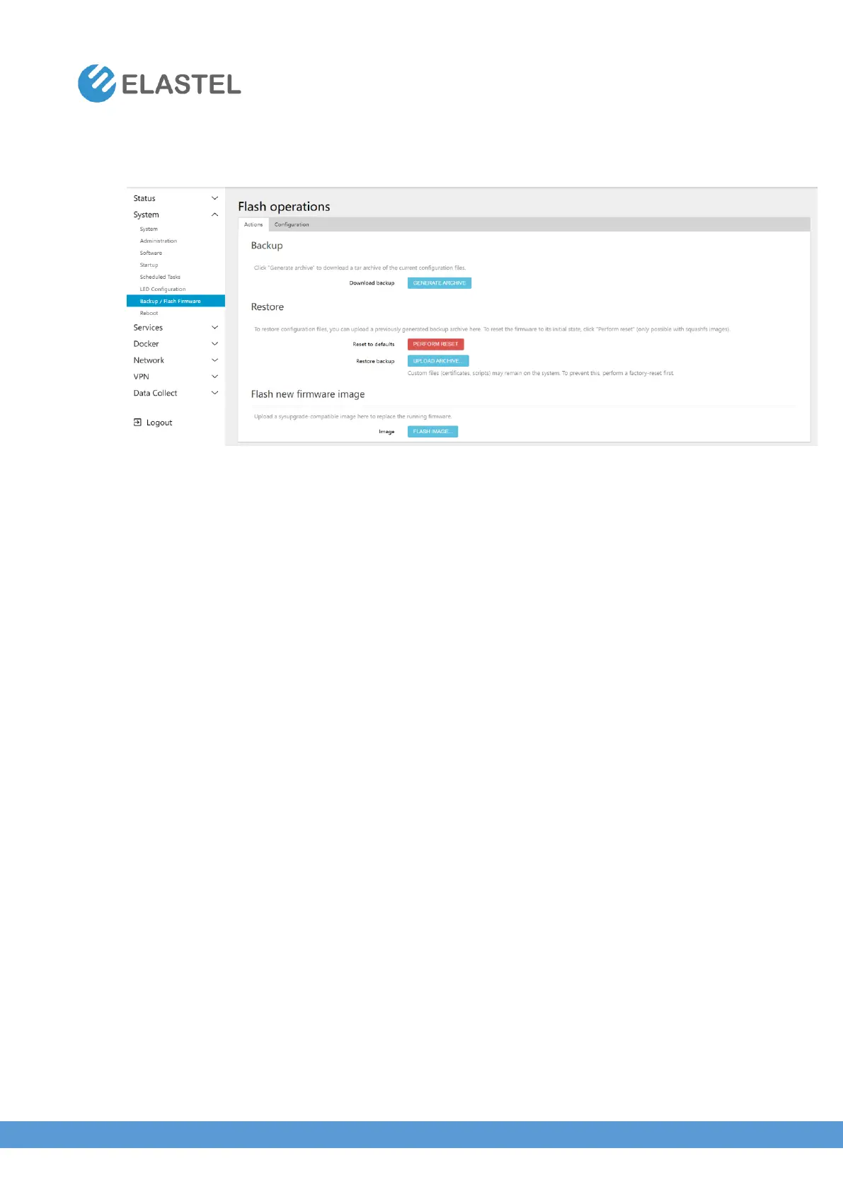 This page provides the operation of current configuration backup, restore, reset to factory,