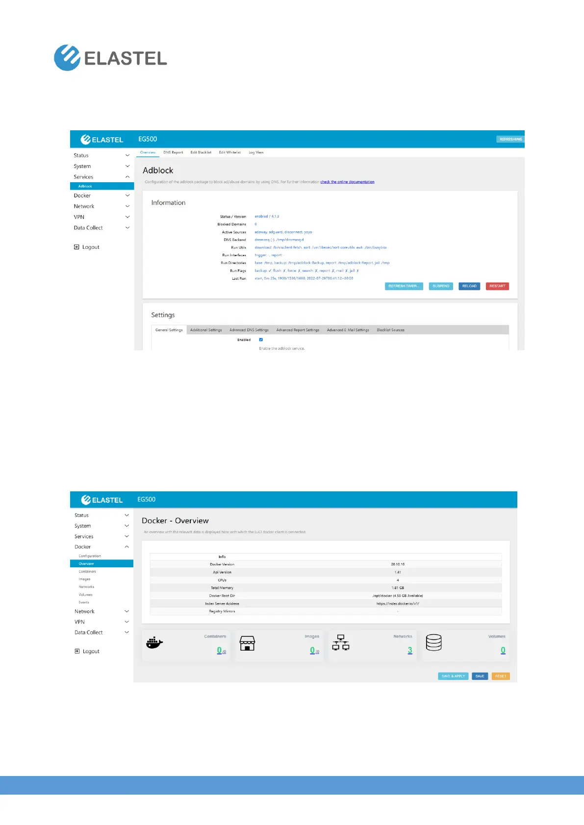 Docker was pre-installed on EG500 Firmware, this page provide the docker related configuration