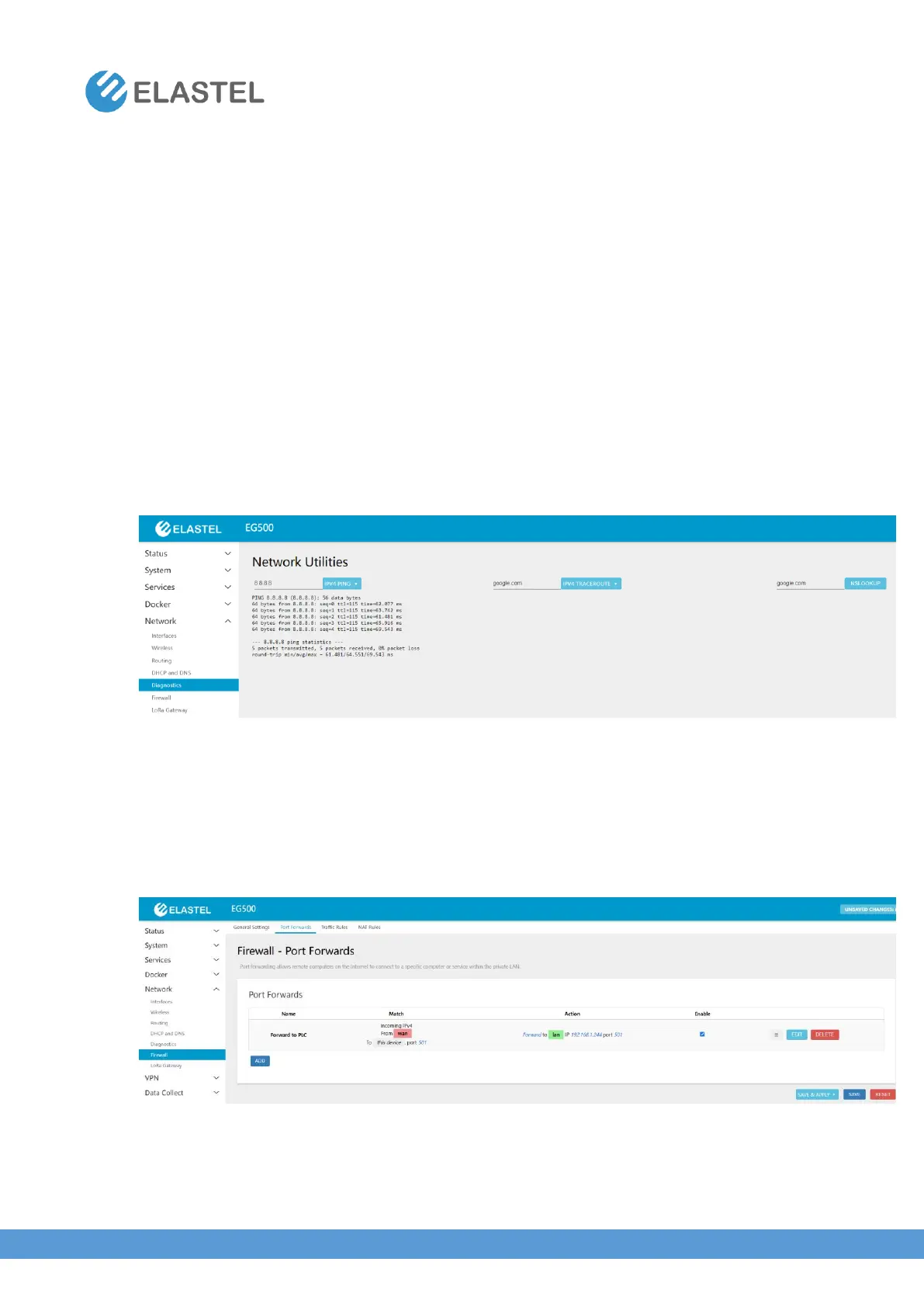 EG500 webUI integrated a web-based diagnostics tool including PING, Traceroute, Nslookup