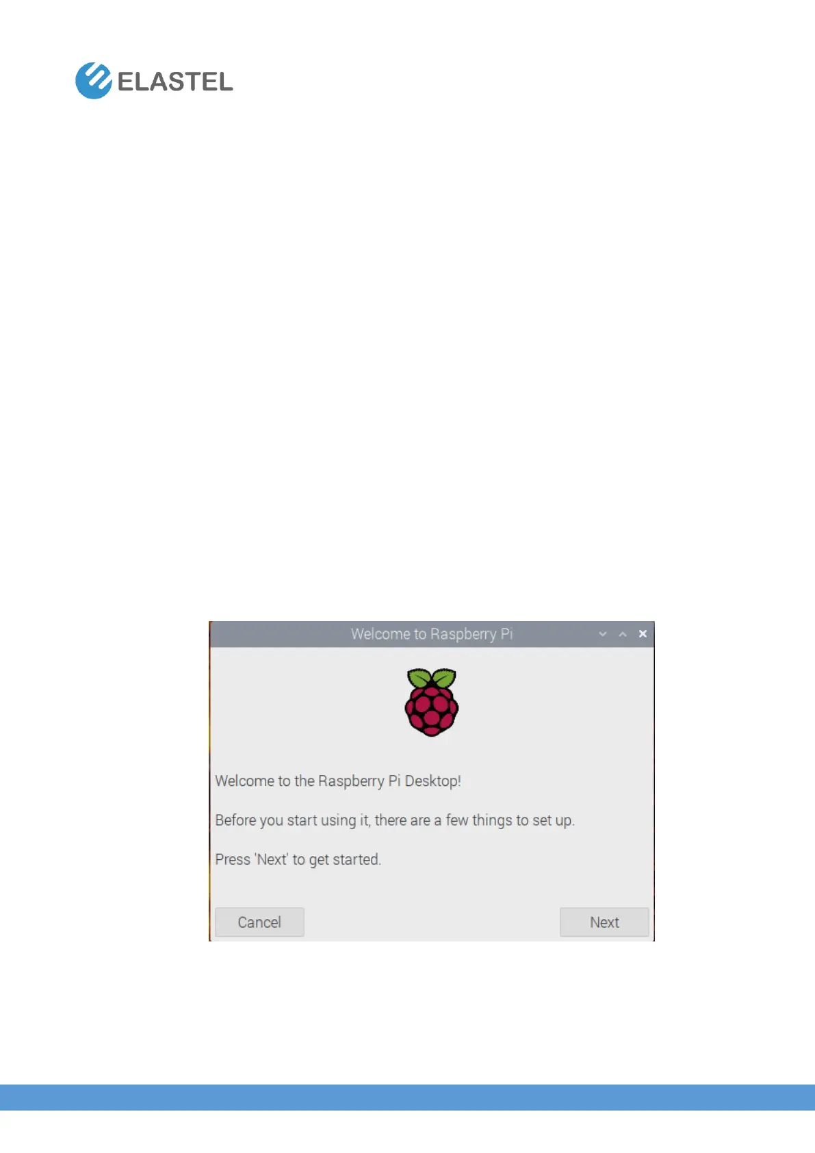 Raspbian welcome screen, configure each steps following the setup wizard, and the EG500 is
