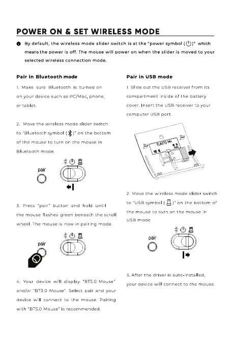 Elasto M4 - Power On and Wireless Mode Setup; Pair in Bluetooth Mode; Pair in USB Mode