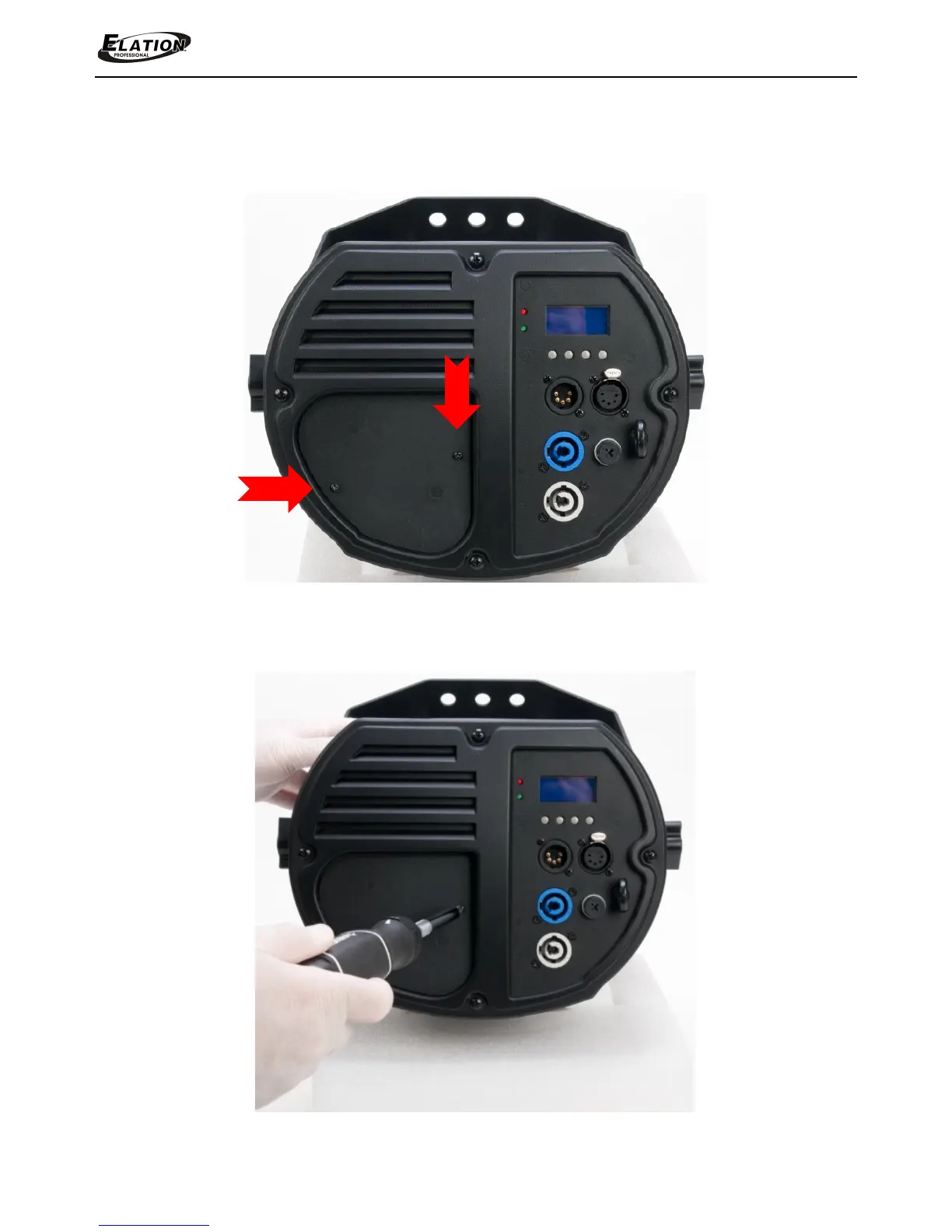 1. Remove (2) screws on lamp cover plate as indicated below.
