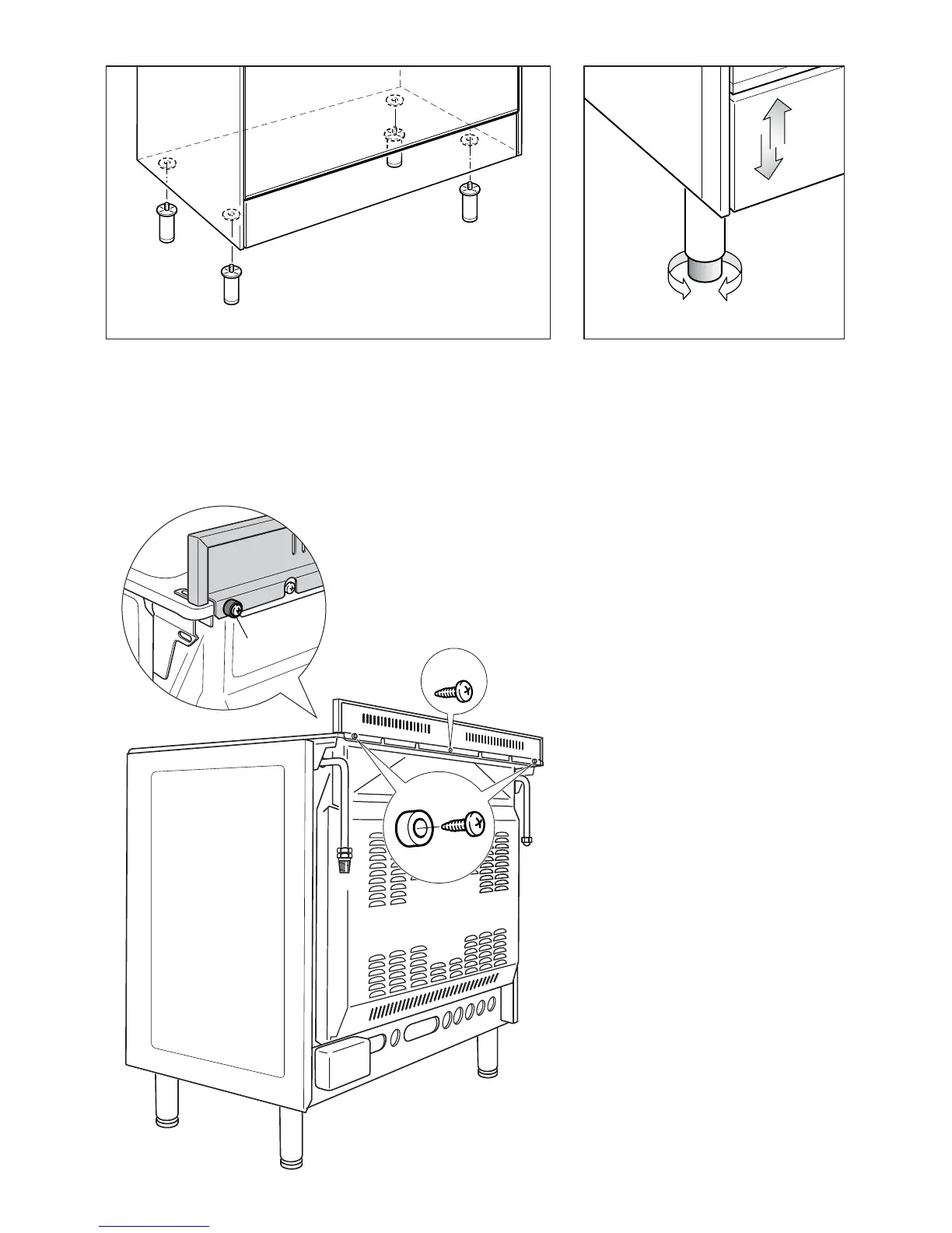 The adjustable feet must be fitted to the base of the cooker before use.