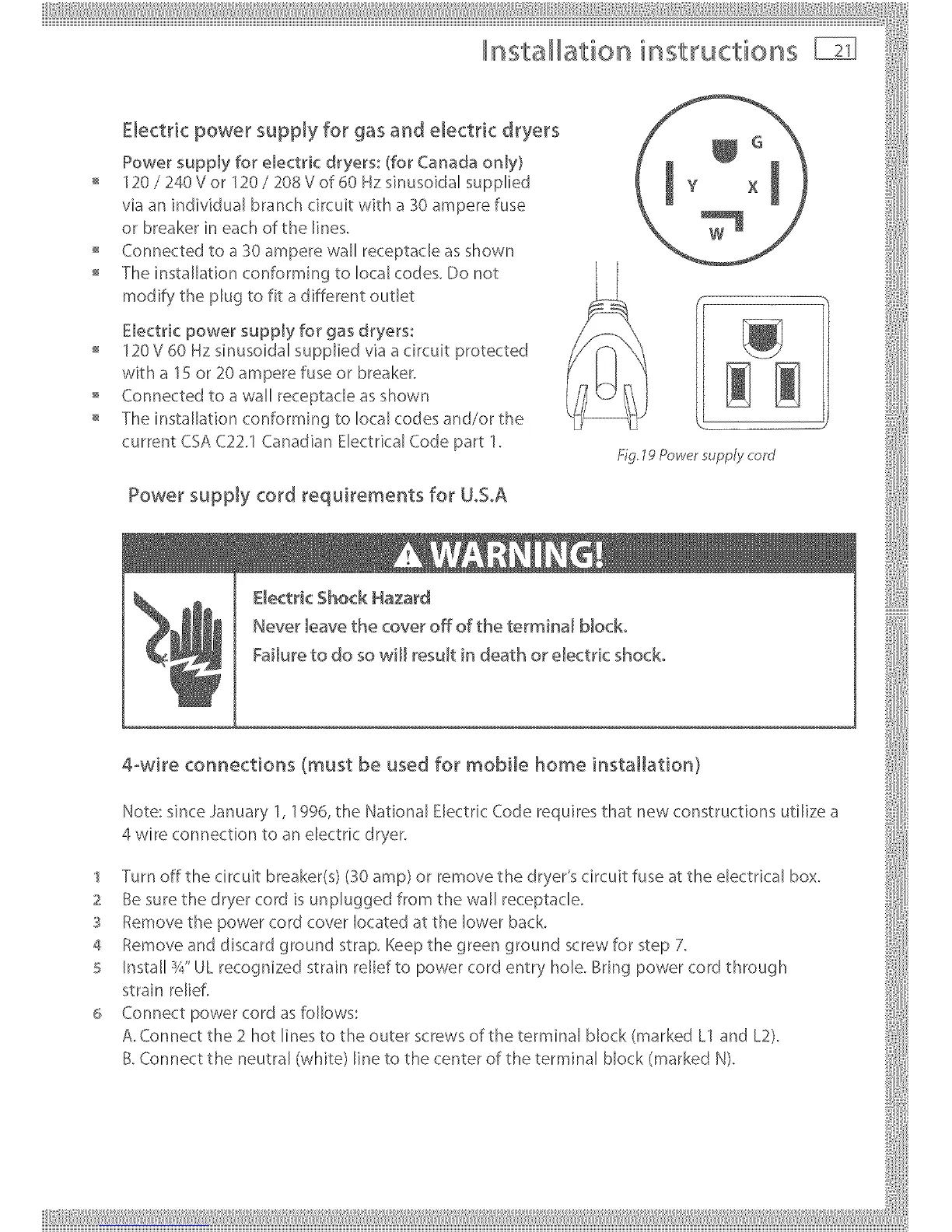 Power supply for electric dryers: (for Canada onJy}