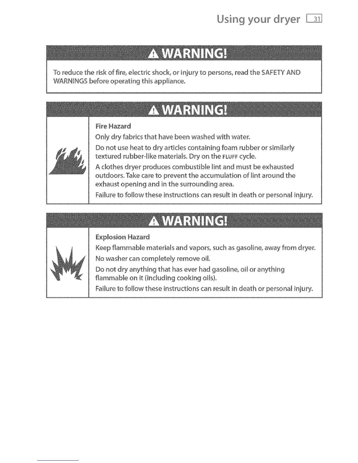 Keep flammaNe materiaB and vapors, such as gaso[ine_ away from dryer_