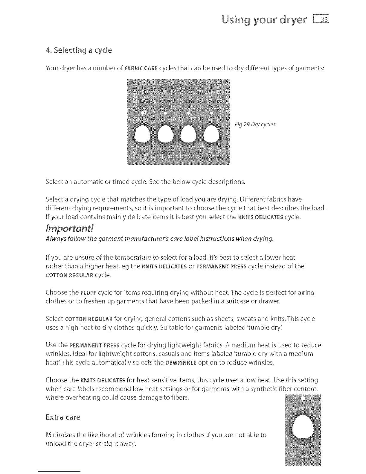 Yourdryer hasa numberof FABmCCAREcyclesthat canbeusedto dr;,,differenttypesof garments: