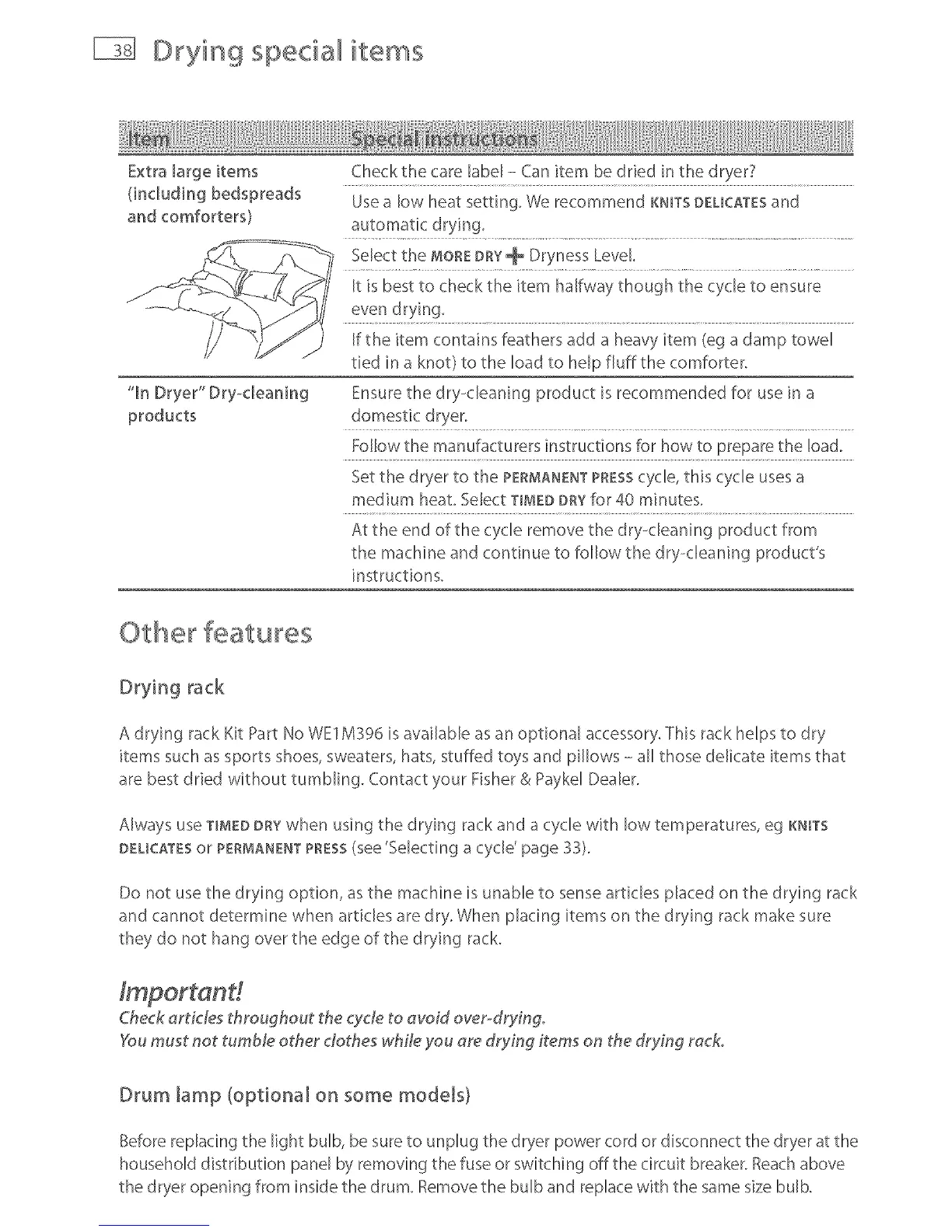 are best dried without tumbling. Contact your Fisher & Paykel Dealer.