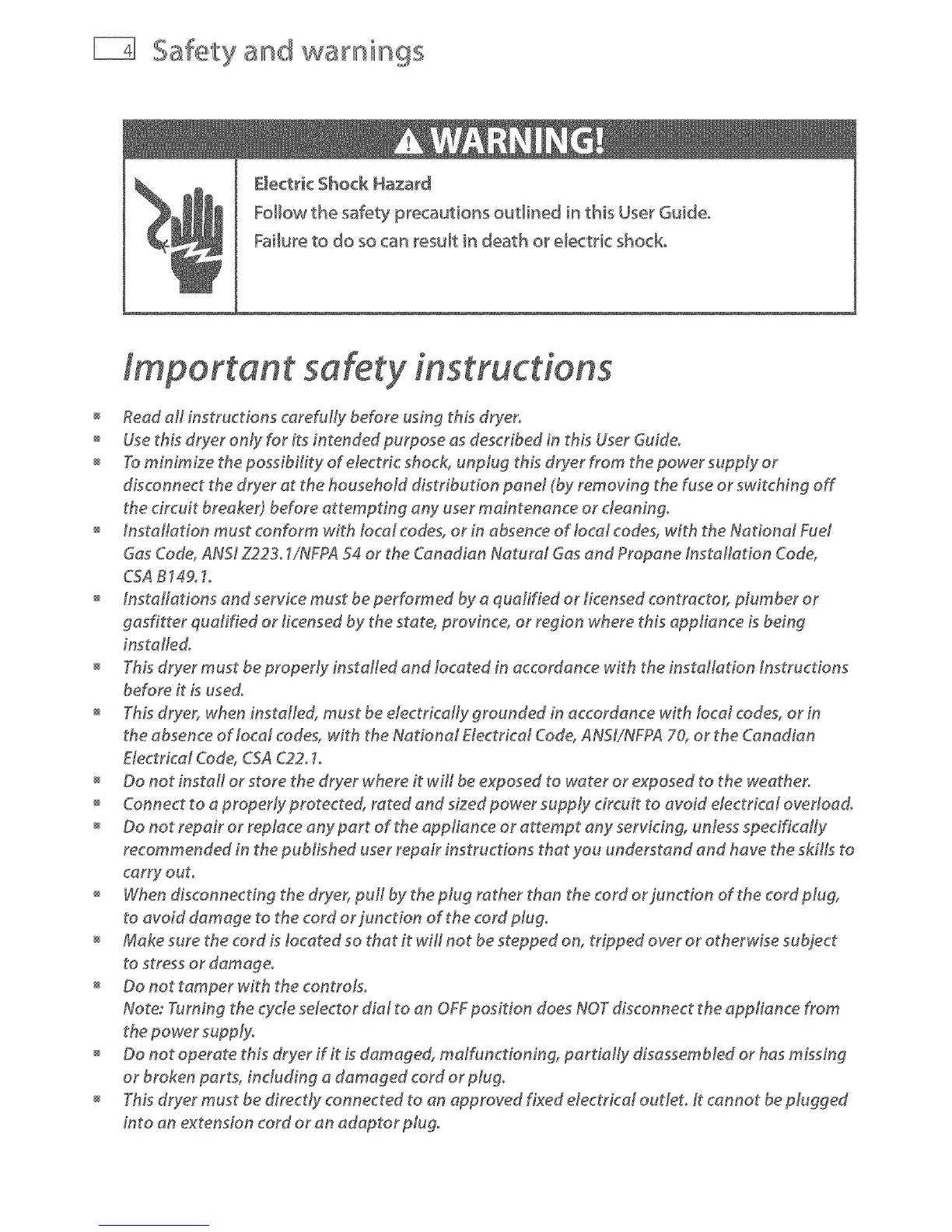Use this dryer oMy for its intended purpose as described in this User Guide°