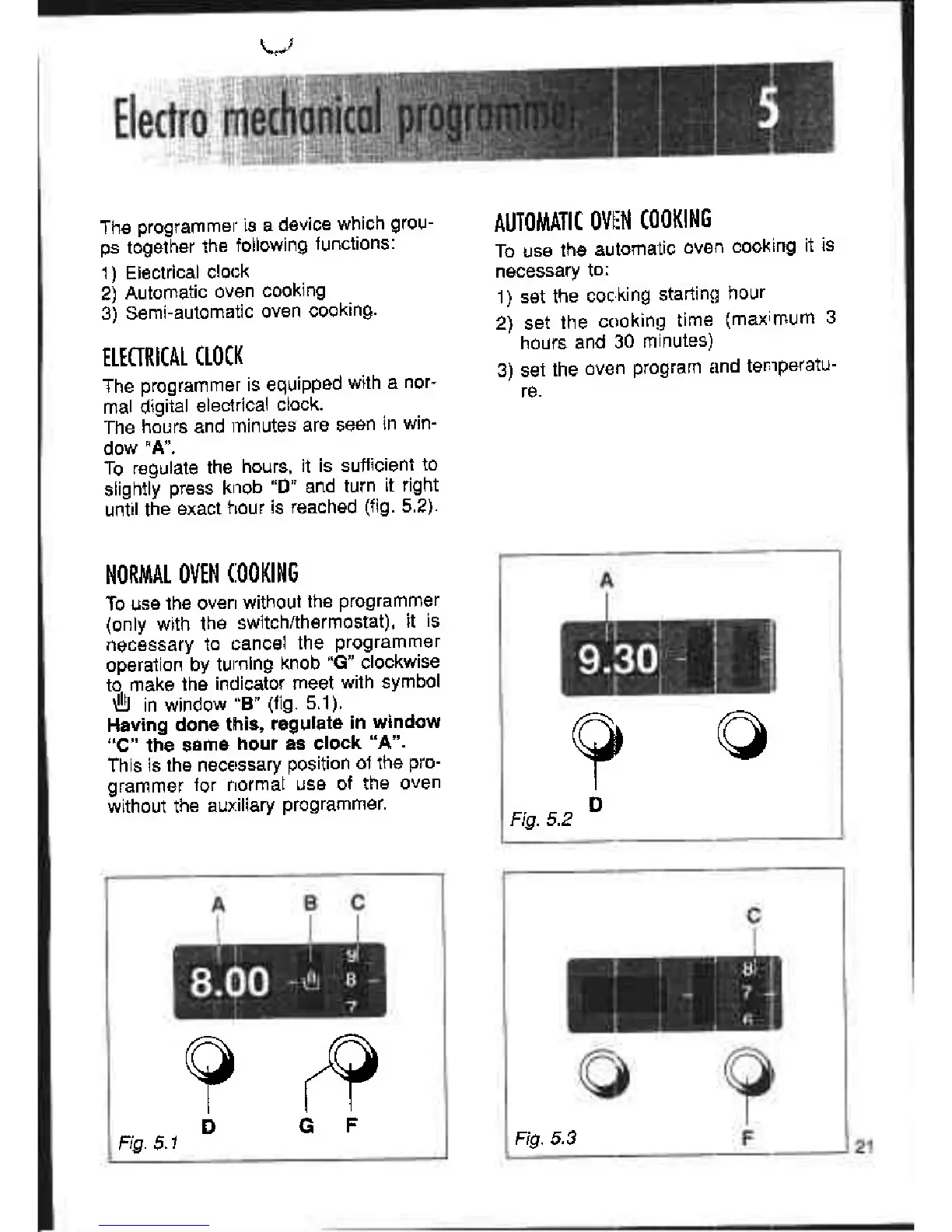 Elba EB 4820 - Electro-mechanical Programmer: Basic Functions; Electrical Clock; Normal Oven Cooking Mode; Automatic Oven Cooking Setup