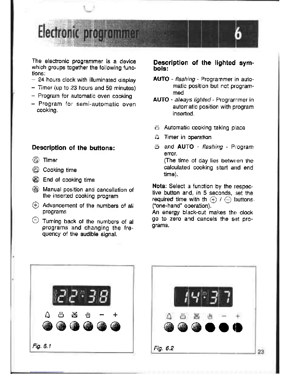 Elba EBO 9722 - Electronic Programmer Functions