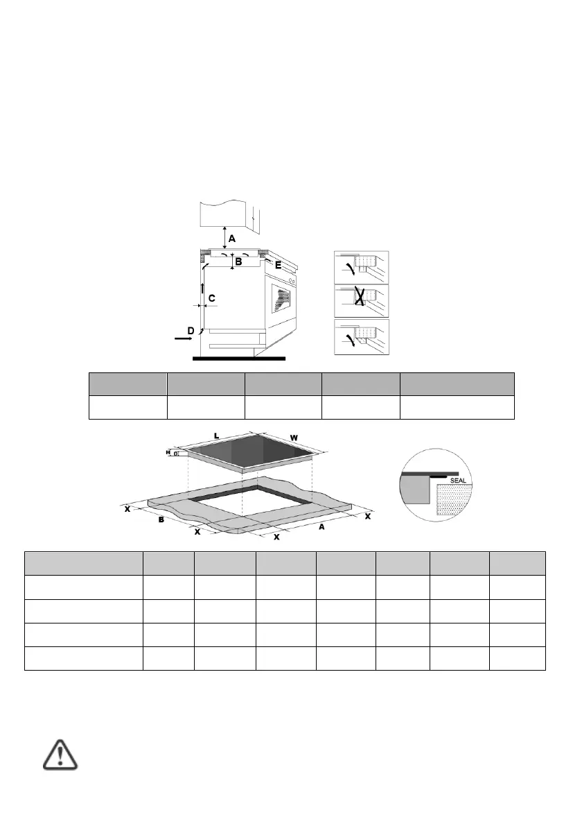 Note: The safety distance between the hotplate and the cupboard above the