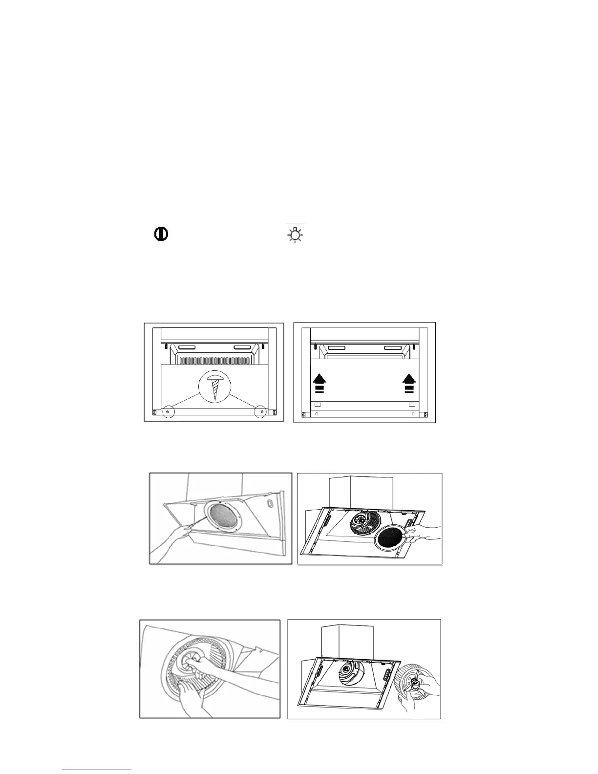 • Clean the cooker hood with damp cloth, hot water and mild detergent. Do not