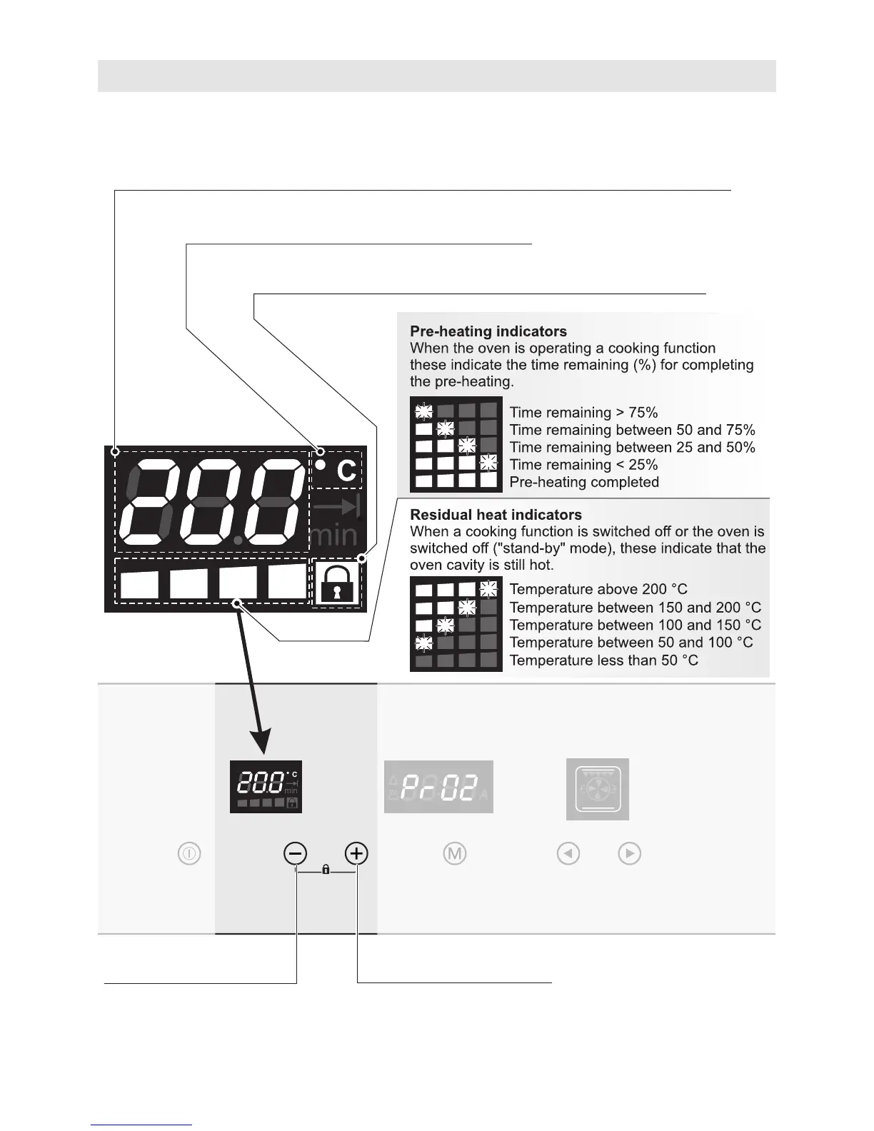 All cooking functions start to operate with a pre-set temperature which can be modified, at any