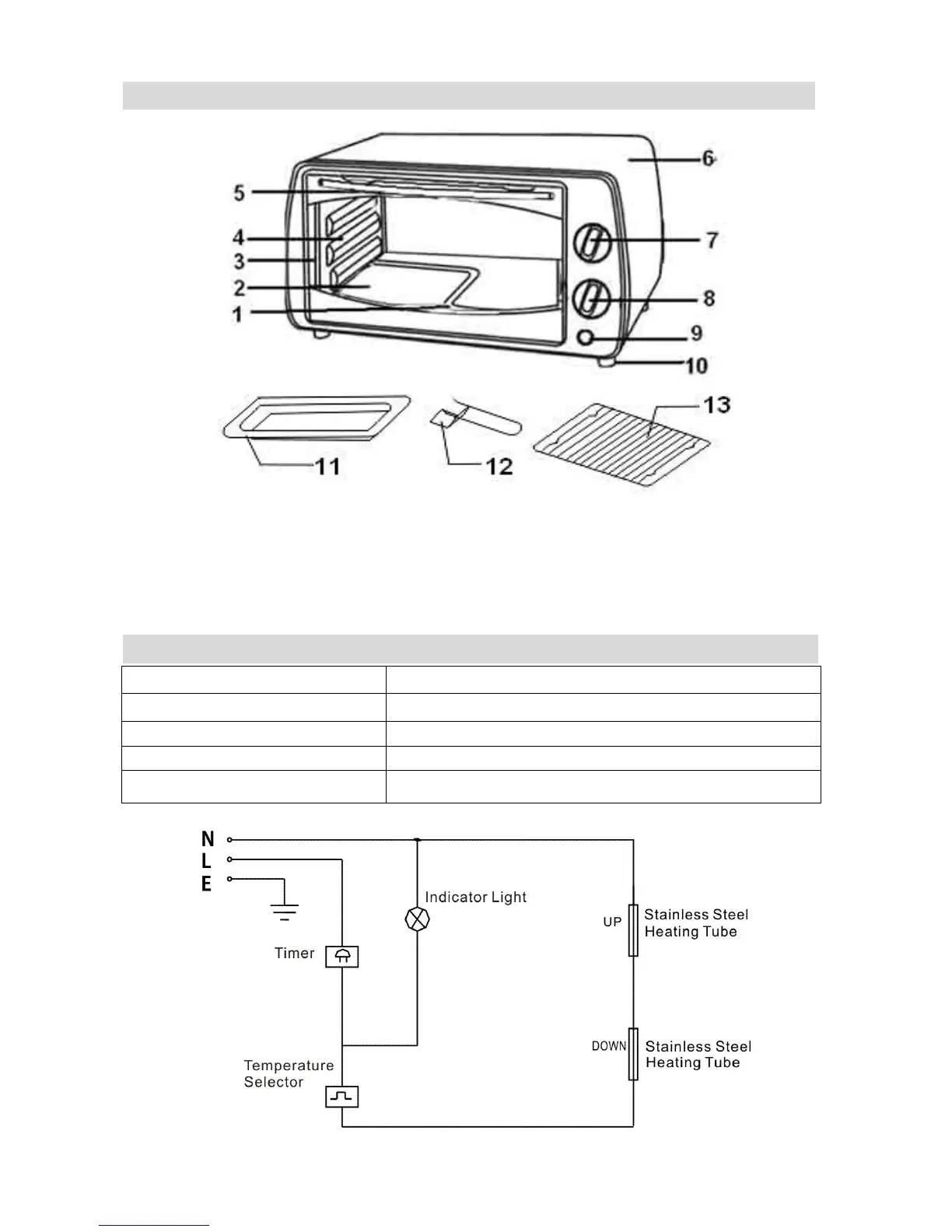 9.Indicator light 10.Stand 11.Food tray 12.Tray handle