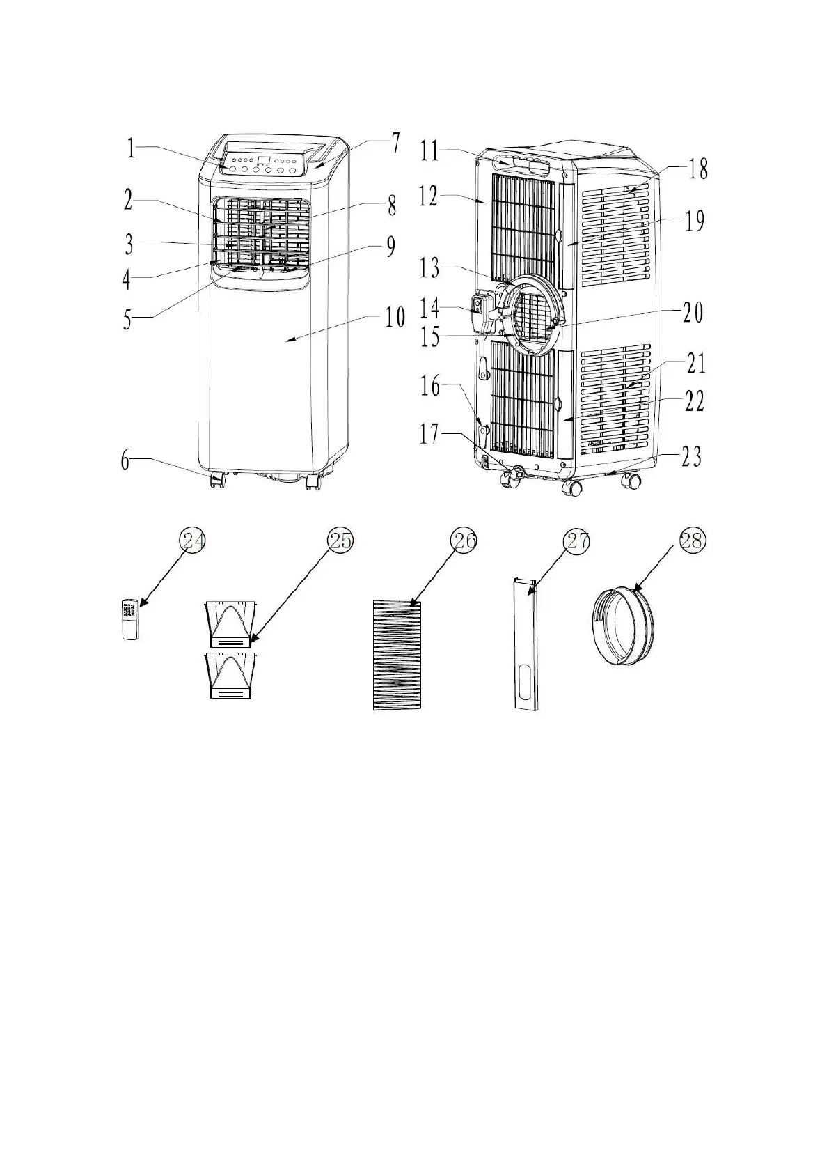 3. Vertical louver 17. Drain cap