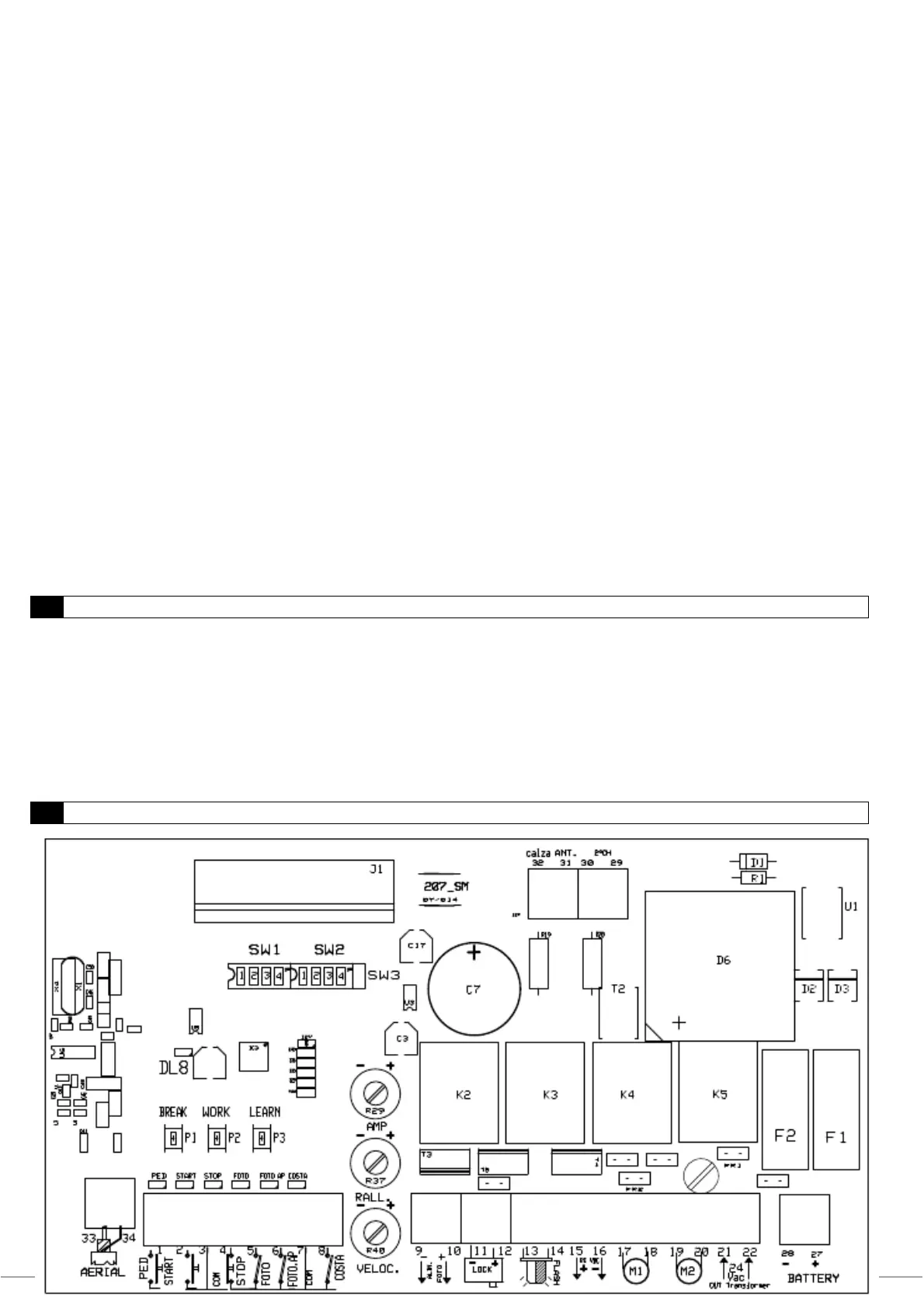 The working speed can be adjusted using the trimmer marked VELOC and the slowing down speed using the trimmer