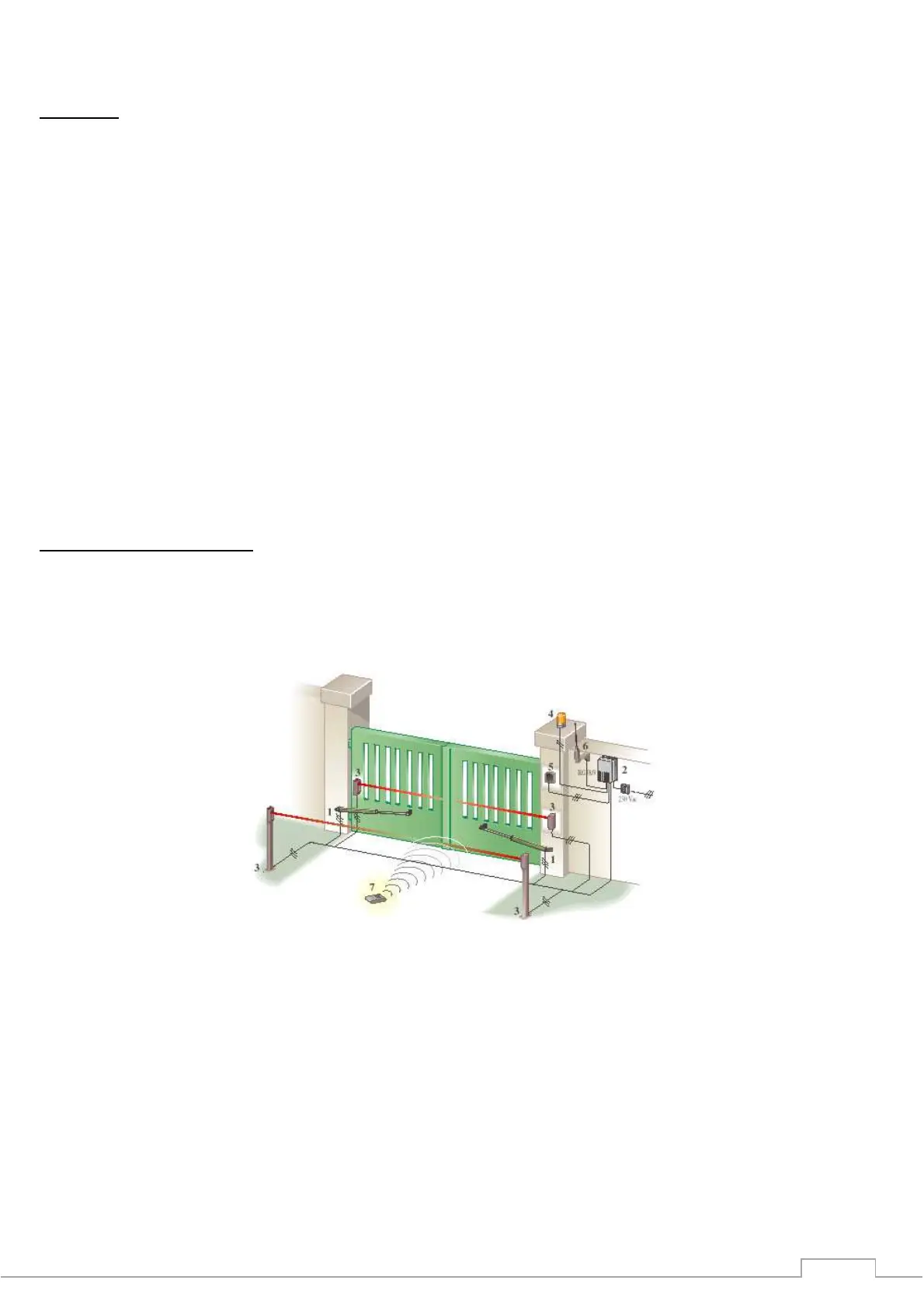 broken, during operation of closing, the gates will stop and reopen. If the beam is broken before the motors have