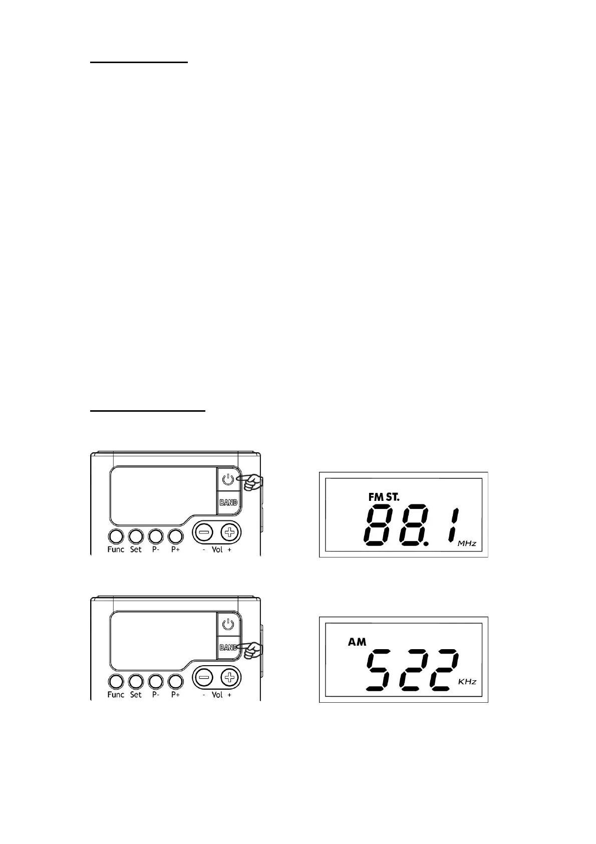 2. Seleccione su banda favorita (AM / FM) presionando el botón ‘SELECCIONAR