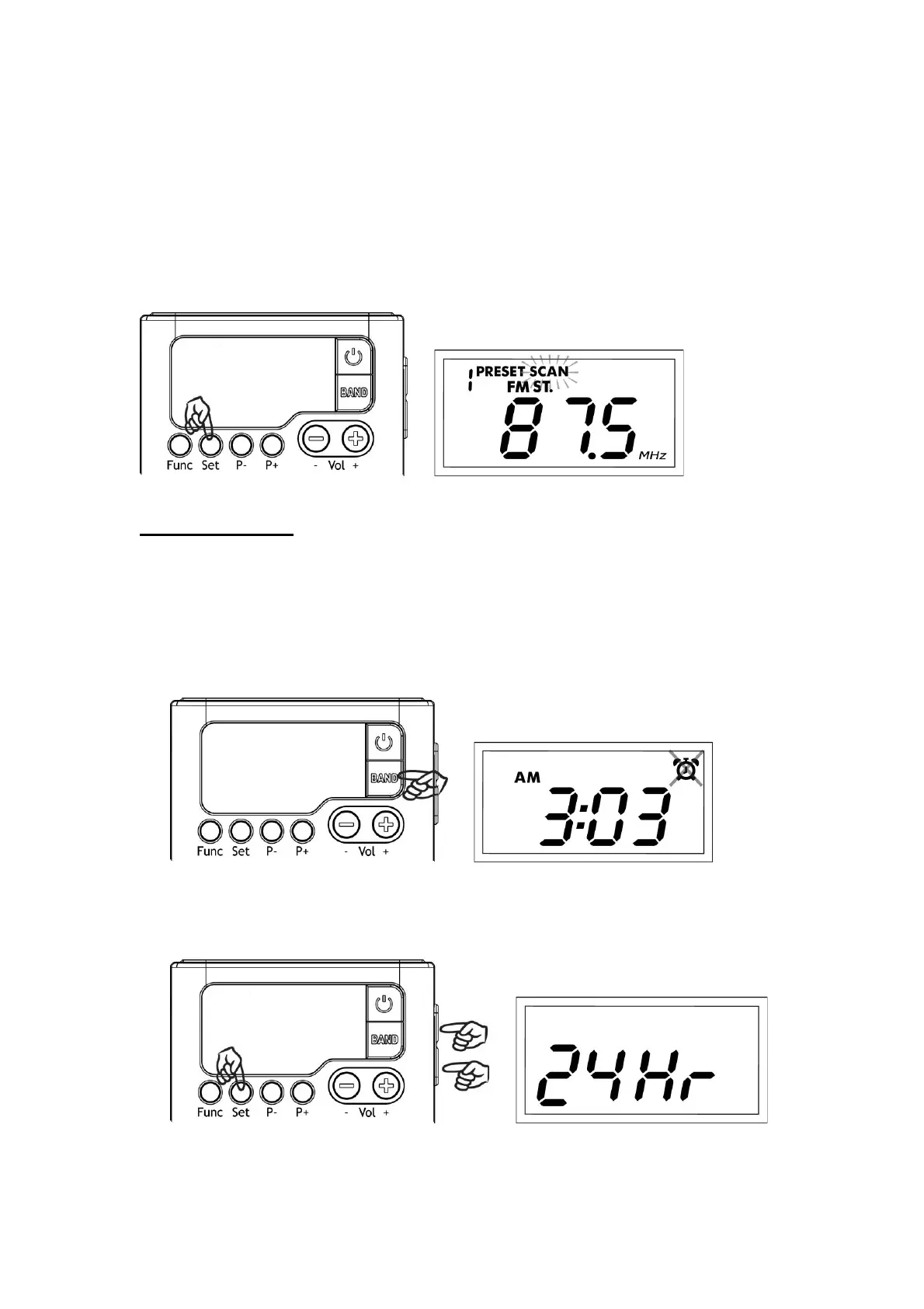 3. Presione el botón ‘OPCIONES’ (9) y parpadeará en la pantalla el modo de hora, 12/24.