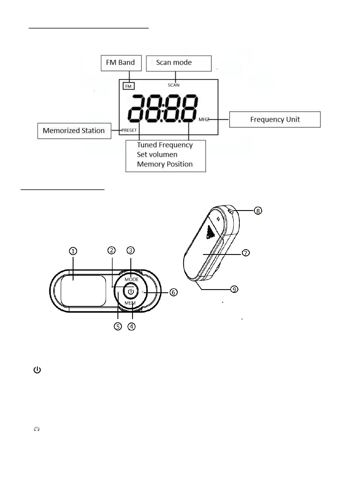 ③ MODE: Auto scan with station store / Manual station selection and manual store.