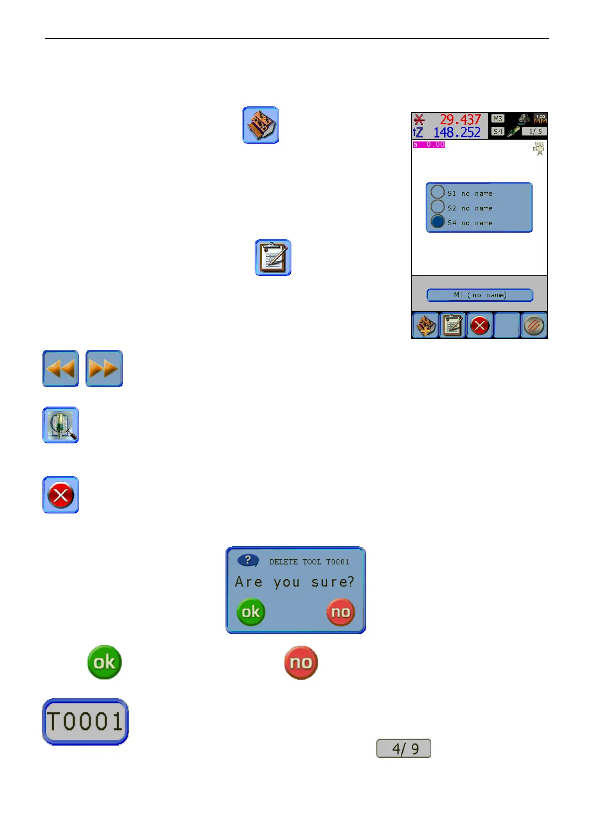 the search button or the scroll icons in order to choose the desired tool, if pressing the delete button, the