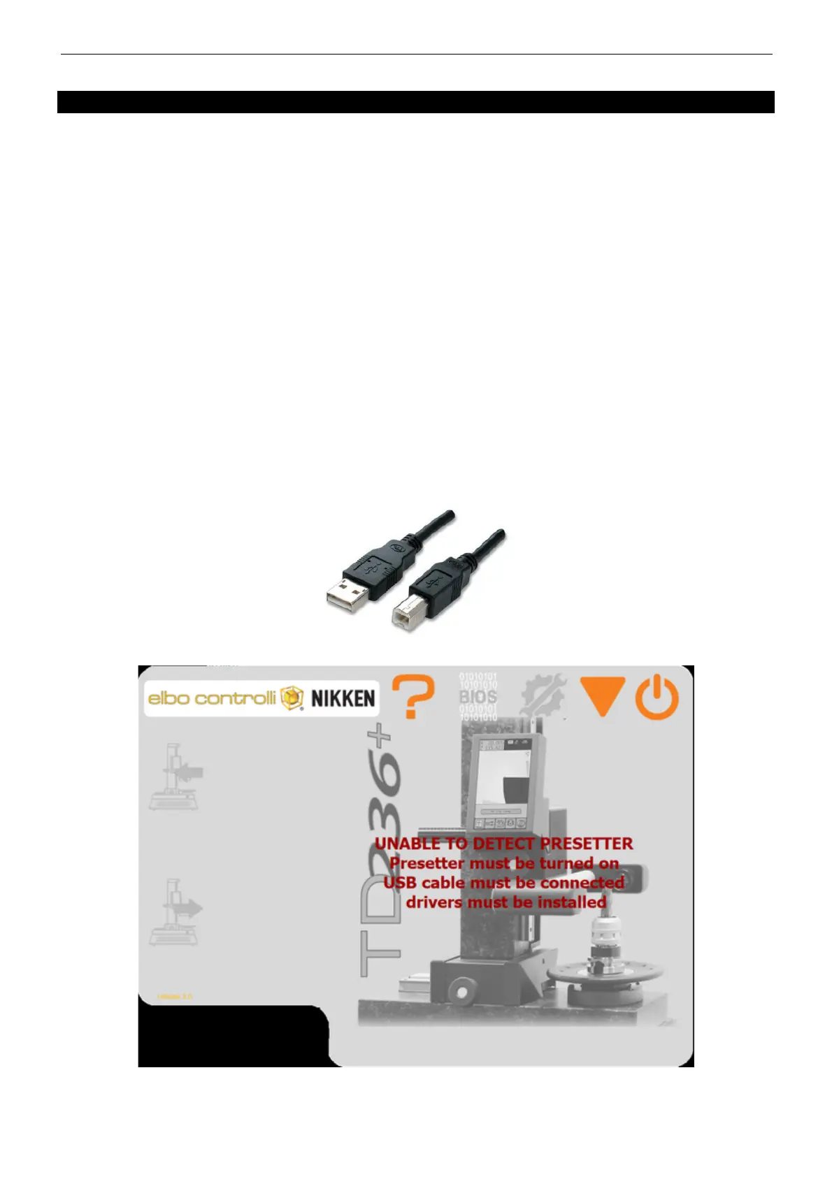 The E236+ Presetter must be connected to a PC through a USB cable of type A-B supplied in equipment: