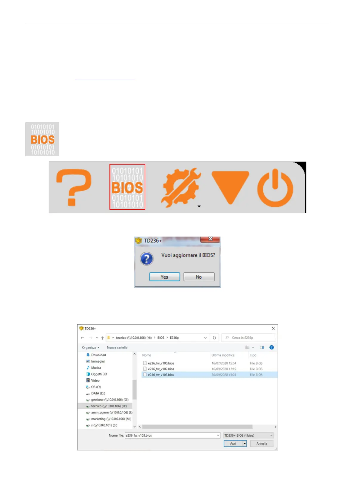 Once in possession of the file “E236+_fw_v***.bios” to install, start the procedure of