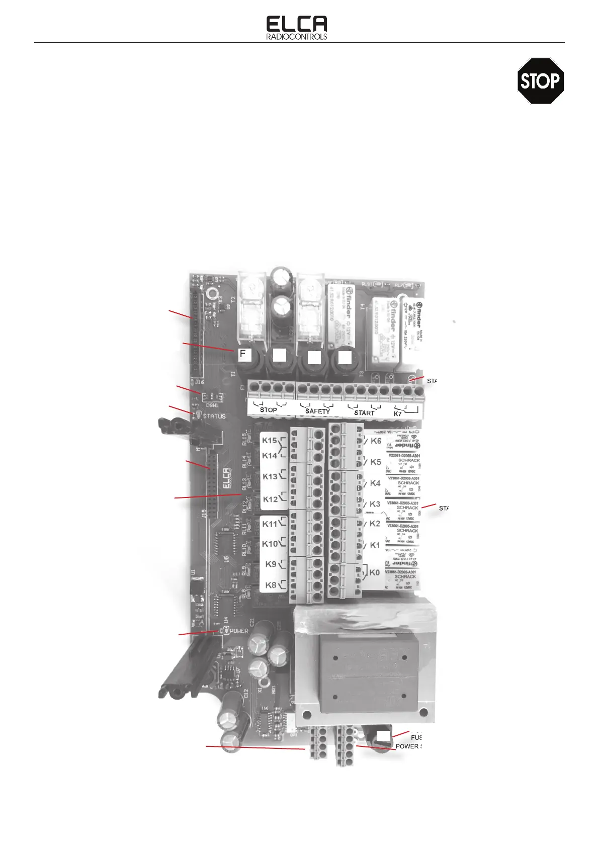 - SCHEDA BASE. Contiene i relè di STOP, SAFETY e di comando, i morsetti per il collegamento elettrico, lo stadio di