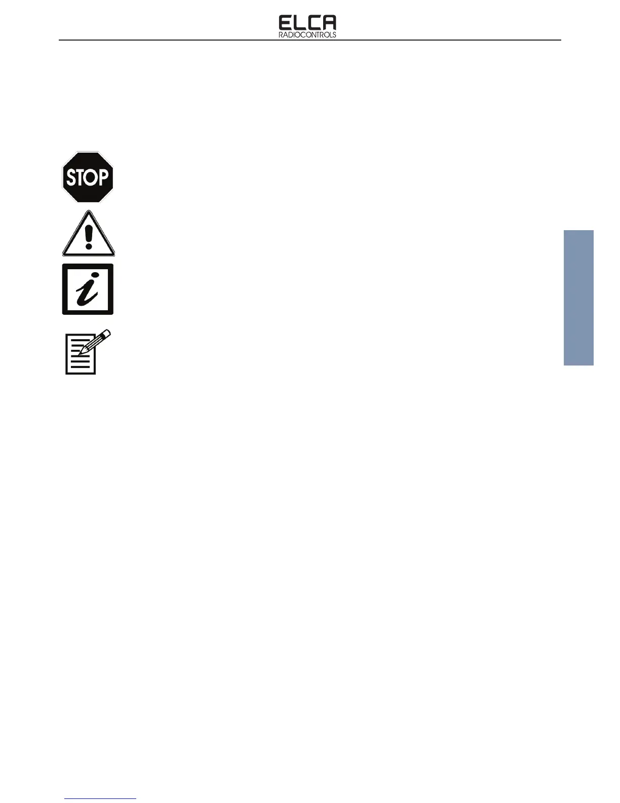 Contact ELCA in the event there are instructions, warnings or indications which may prove to be unclear.