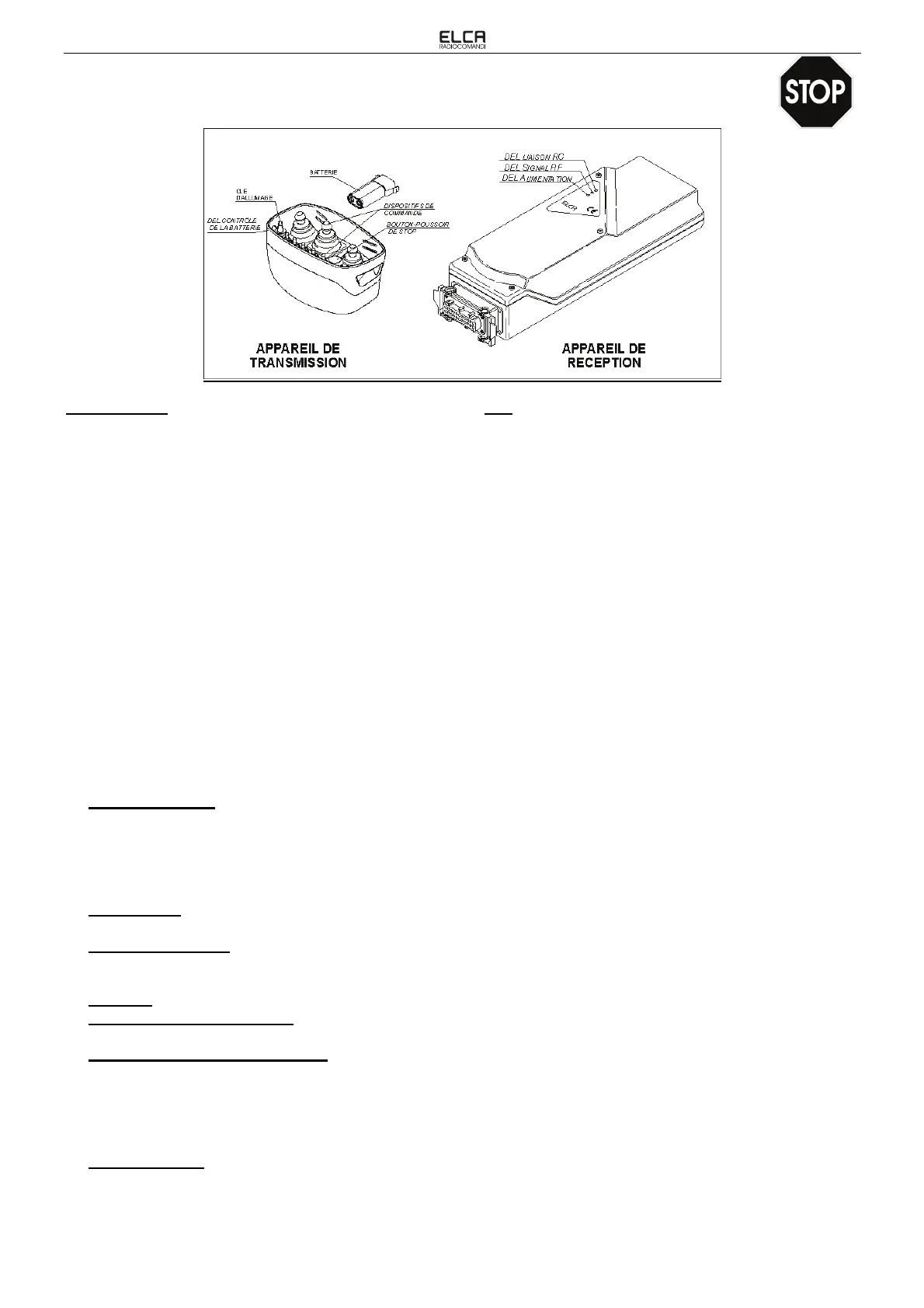 • Fonction de STOP: Actionner le bouton-poussoir en forme de champignon (STOP activé) et le récepteur