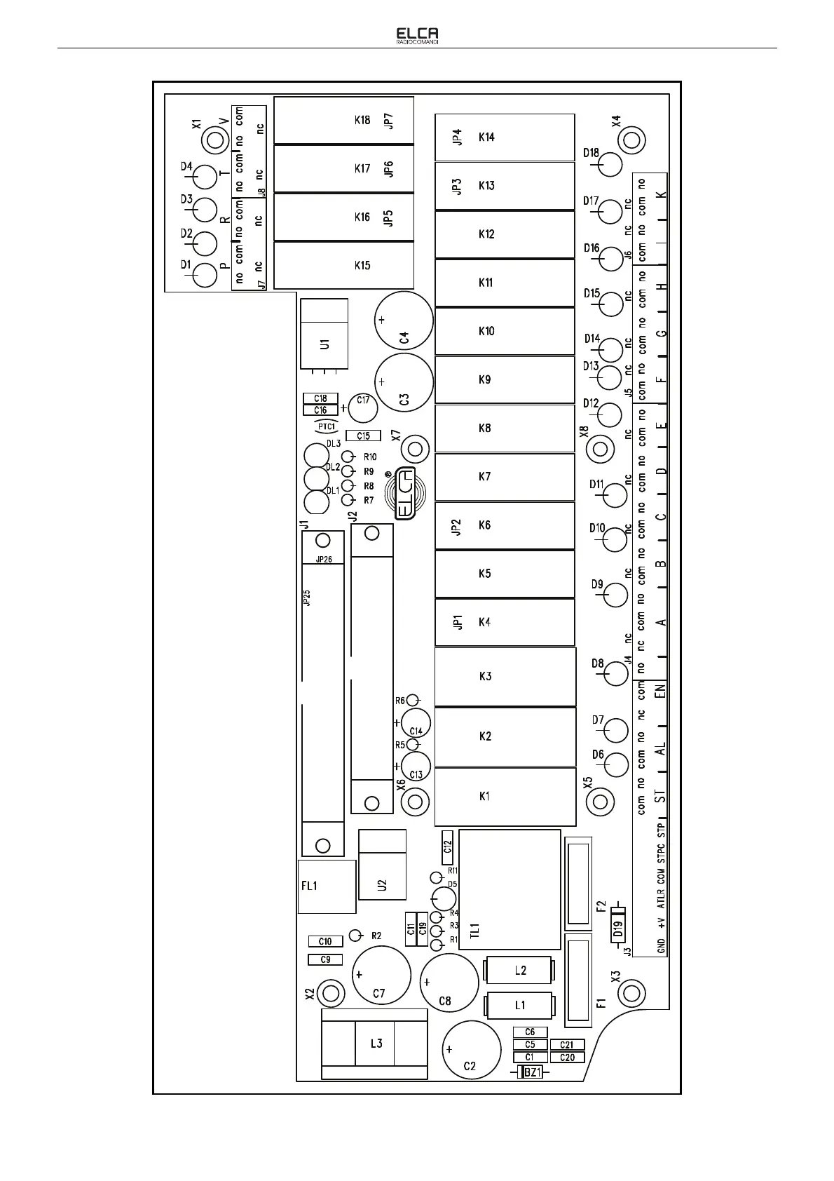 Layout of the components on the main card of the AR GENIO-FLEXI-SW.E receiving unit
