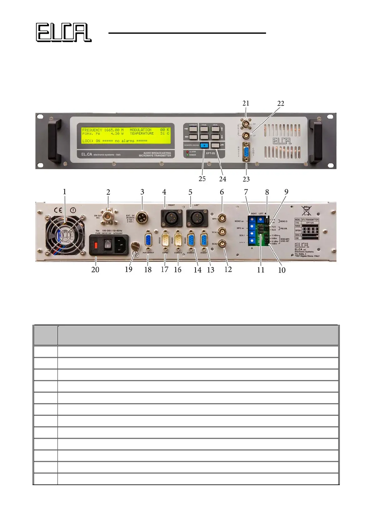 6 External MPX input 0 – 12 dBm