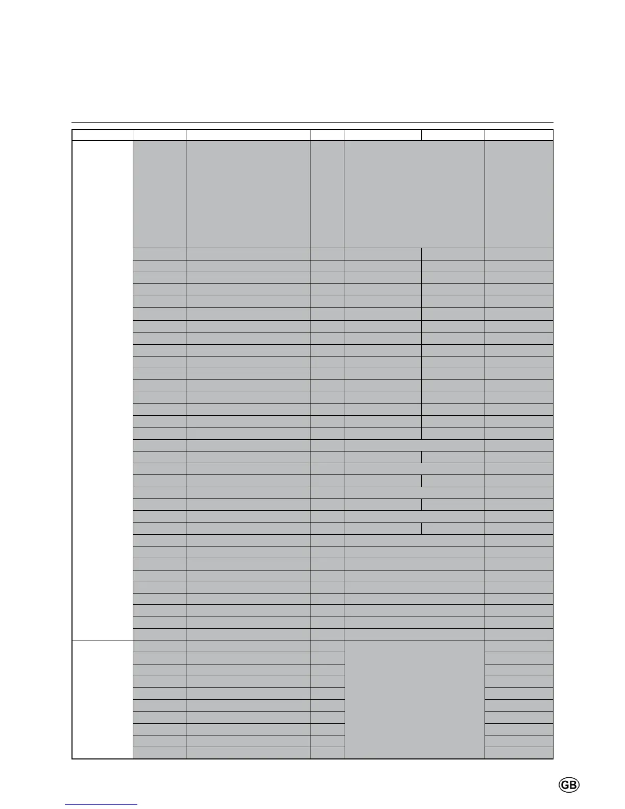 Menu Line no. Selection possibilities Unit Min. Max Factory setting