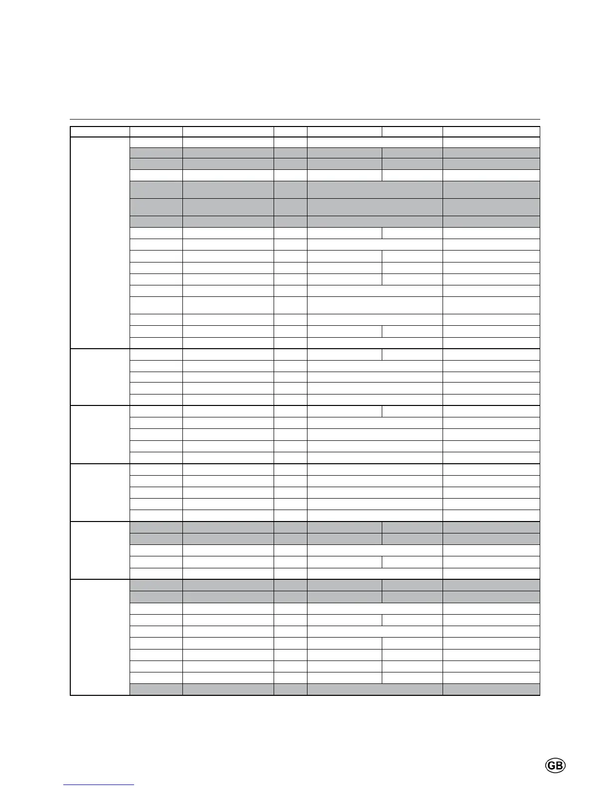 Menu Line no. Selection possibilities Unit Min. Max Factory setting