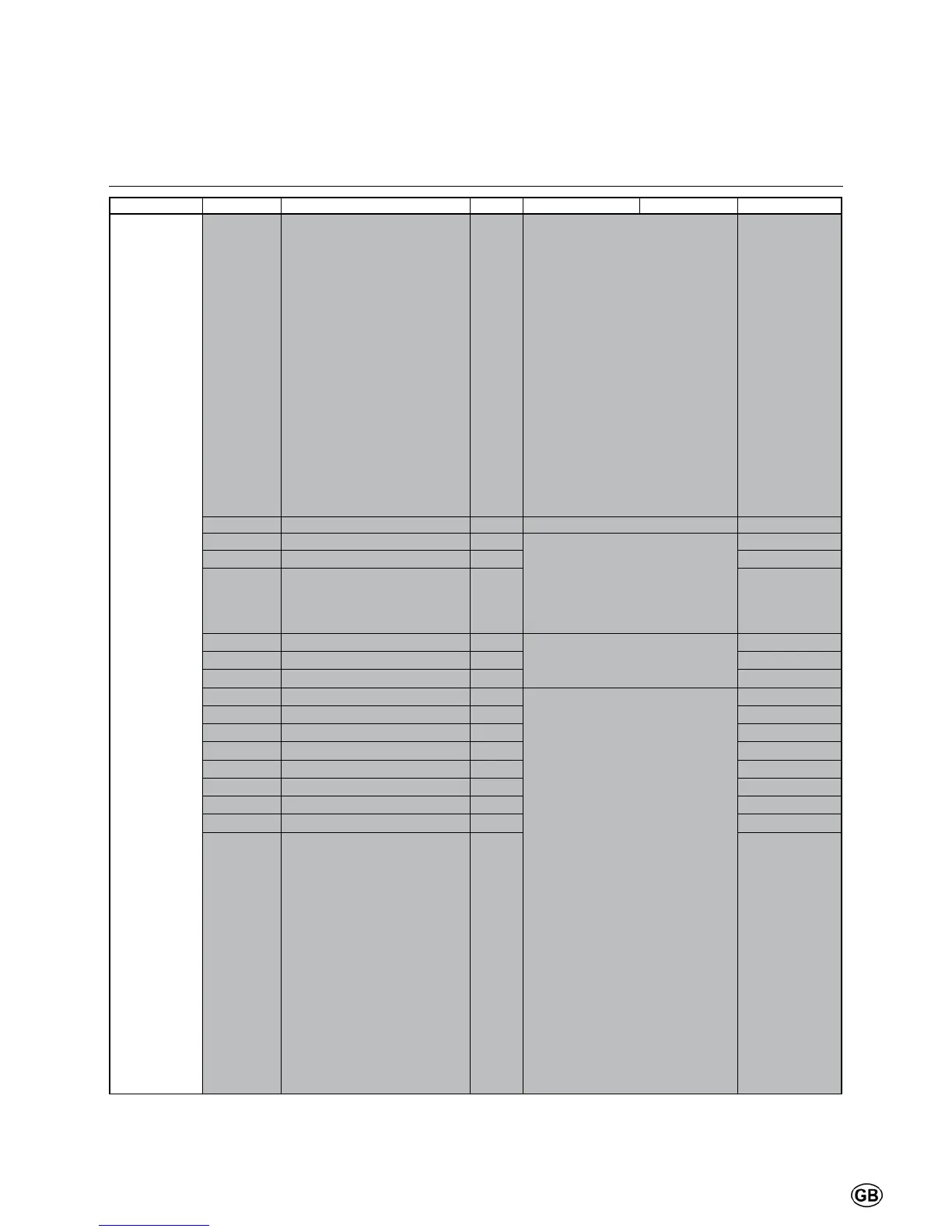 Menu Line no. Selection possibilities Unit Min. Max Factory setting